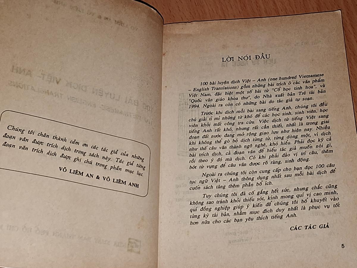 100 bài luyện dịch Việt Anh ( 100 Vietnamese English translations ) - Võ Liêm An & Võ Liêm Anh - NXB TP.HCM 1997, 256 trang, khổ 13x19cm.