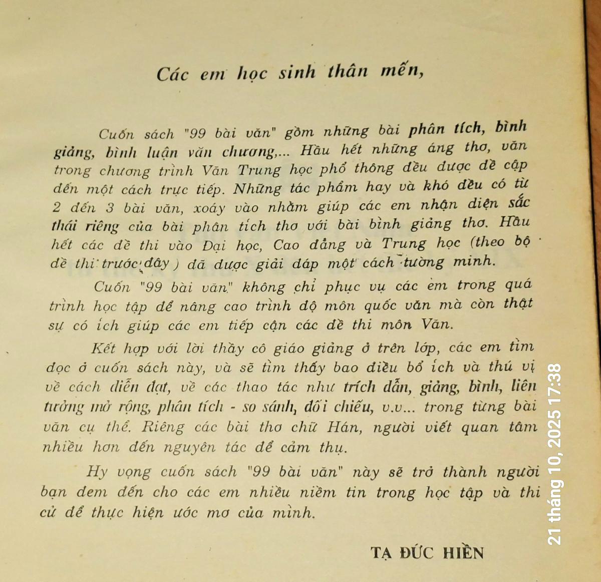 99 bài văn dành cho học sinh lớp 10-11-12 ôn thi tốt nghiệp phổ thông trung học và đại học - Tạ Đức Hiền - NXB GIÁO DỤC 1998, 584 trang, khổ 14,5x20,5cm.