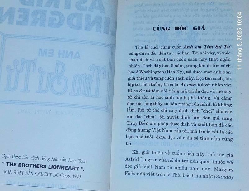 Rồi Vụn bánh cũng được toại nguyện, hai anh em cậu gặp nhau ở chốn Thiên đường bí ẩn, xứ sở của thần thoại và truyền thuyết cổ xưa. Nhưng lúc này, cuộc sống ở Nangijala đang bị đe dọa bởi những kẻ Tengil tàn bạo. Và từ đây, chuyến phiêu lưu nghẹt thở của Anh em Sư tử Tâm bắt đầu...