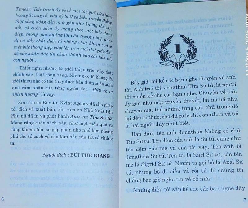 "Nếu đến đó, người ta sẽ được phiêu lưu từ sáng tới tối, thậm chí vào cả ban đêm... Đó là một điều gì khác xa với việc phải nằm lì trên giường, ho khù khụ, đau ốm và không được chơi với bạn bè." Jonathan bảo Vụn bánh như thế. Lời kể của anh quyến rũ đến độ Vụn bánh không muốn tới Nangijala mà không có Jonathan đi cùng.