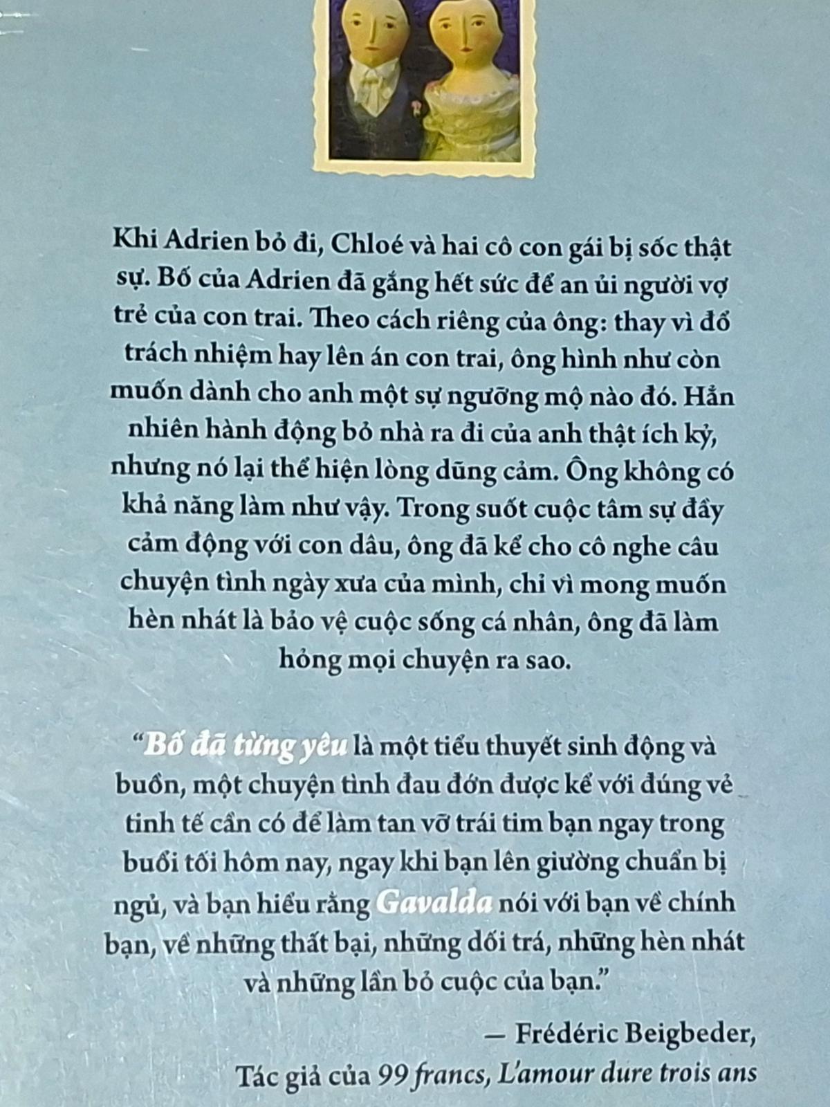 - “Bố đã từng yêu là một tiểu thuyết sinh động và buồn, một chuyện tình đau đớn được kể với đúng với tinh tế cần có để làm tan vỡ trái tim bạn ngay trong buổi tối hôm nay, ngay khi bạn lên giường chuẩn bị ngủ, và bạn hiểu rằng Gavalda nói với bạn về chính bạn, về những thất vại, những dối trá, nhưng hèn nhát và những lần bỏ cuộc của bạn” – Frédéric Beigbeder, Tác giả của 99 frencs, L’amour dure trois ans.