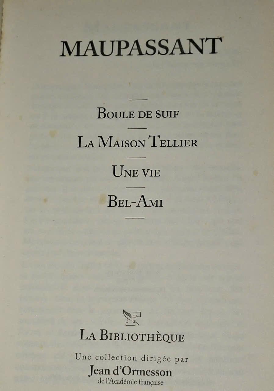 Boule De Suif , La Maison Tellier, Une Vie, Bel-ami , Maupassant