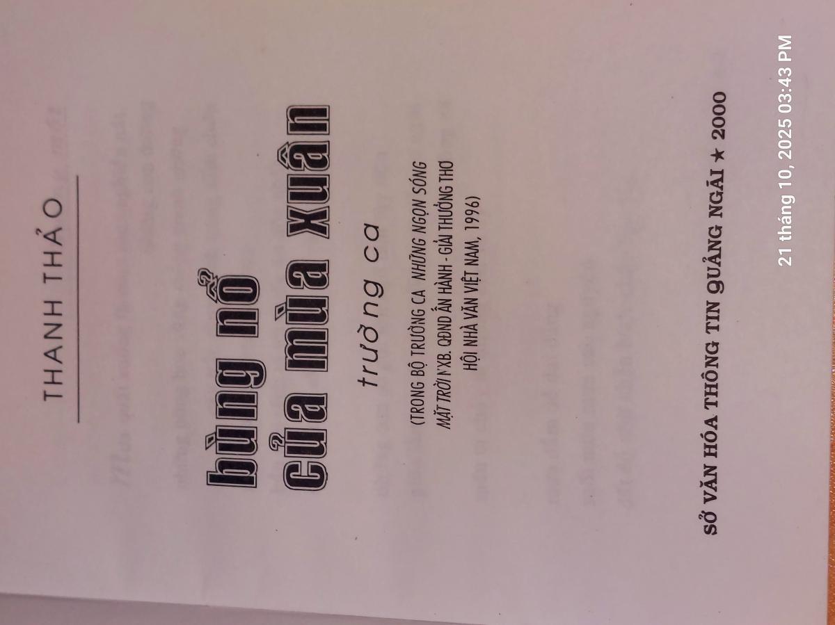 Bùng nổ của mùa xuân ( trường ca ) - Thanh Thảo - SỞ VHTT QUẢNG NGÃI 2000 - 76 trang, khổ 13x19cm.
