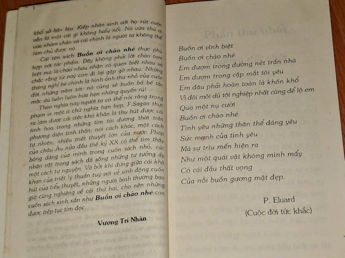 Buồn ơi chào mi - Francoise Sagan ( Vũ Đình Bình dịch ) - NXB HỘI NHÀ VĂN 2002, 234 trang, khổ 10,5x17,5cm