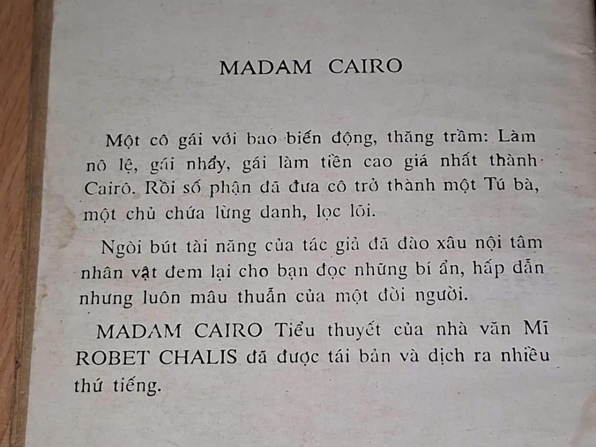 MADAM CAIRO _Tiểu thuvết của nhà văn Mĩ ROBET CHALIS đã được tái bản và dịch ra nhiều thứ tiếng.