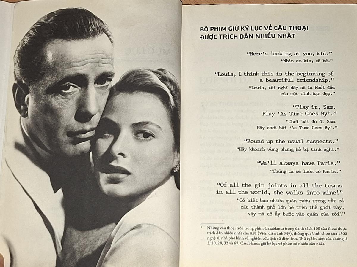 Tình yêu của Rick và Ilsa qua diễn xuất tuyệt vời của các ngôi sao Humphrey Bogart và Ingrid Bergman khi được đọc trên câu chữ kịch bản và qua phân tích của các nhà phê bình, nhà văn lớn trên thế giới, chinh phục độc giả yêu điện ảnh lẫn những người mê say một không khí lãng mạn của thời xa xưa. Casablanca - Bộ phim huyền thoại là cuốn sách đẹp đẽ dành cho những tâm hồn yêu nghệ thuật.