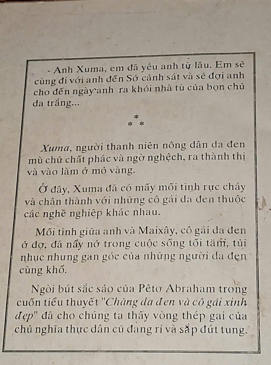 Chàng Da Đen và Cô Gái Xinh Đẹp - Peter Abraham ( Xuân Du dịch ) - NXB QUẢNG NINH 1989, 256 trang, khổ 13x19cm