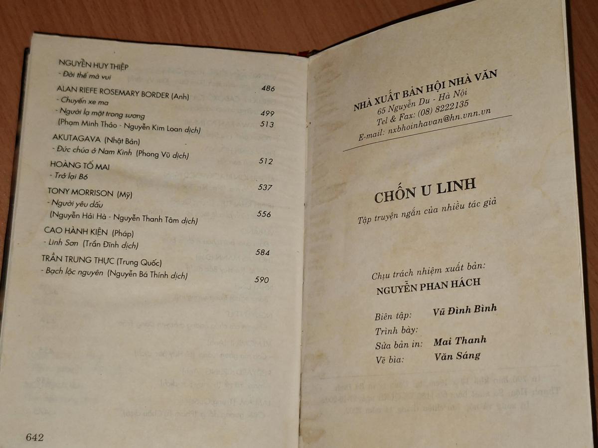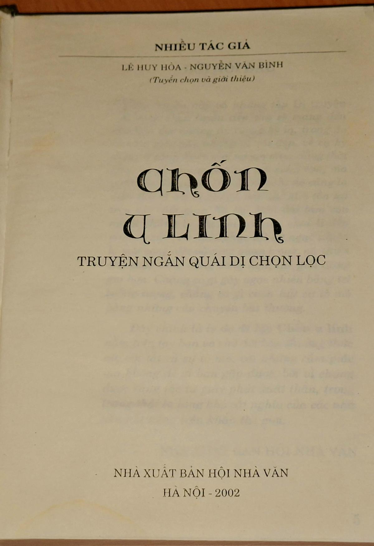 Chốn U Linh ( Truyện ngắn quái dị chọn lọc ) - NHIỀU TÁC GIẢ ( Lê Huy Hòa, Nguyễn Văn Bình tuyển chọn ) - NXB HỘI NHÀ VĂN 2002, 644 trang, khổ 13x19cm.