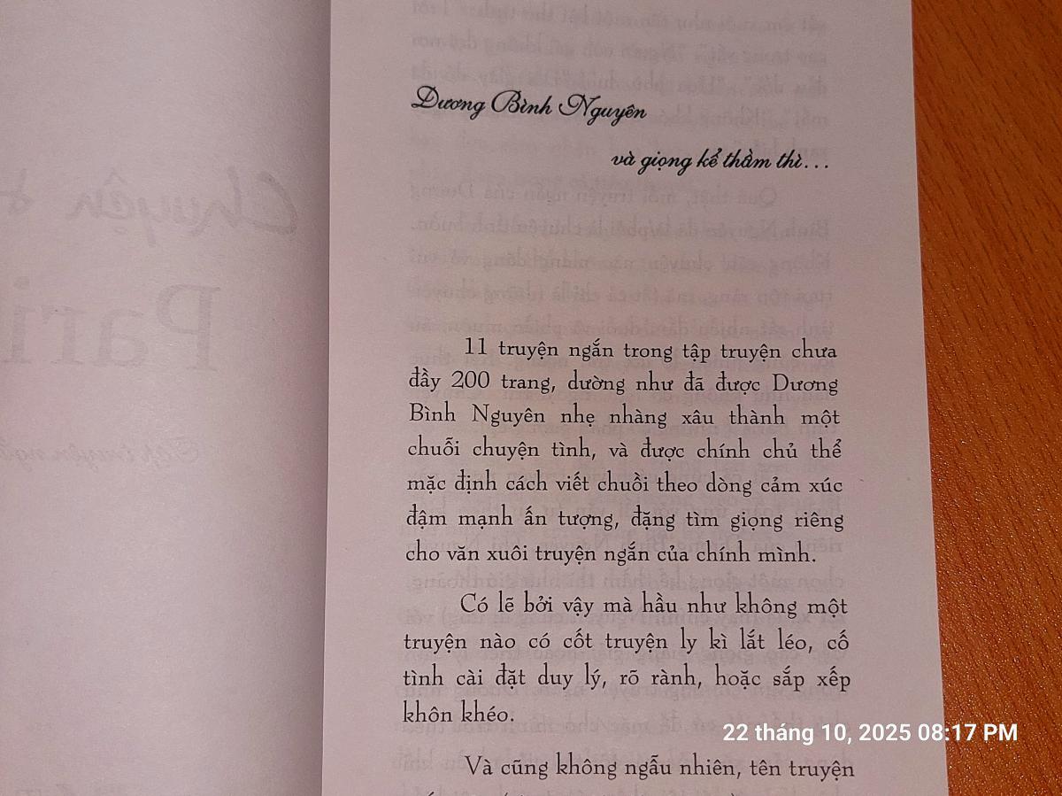 Chuyện Tình Paris ( tập truyện ngắn ) - Dương Bình Nguyên - NXB HỘI NHÀ VĂN 2010, 188 trang, khổ 12x20cm