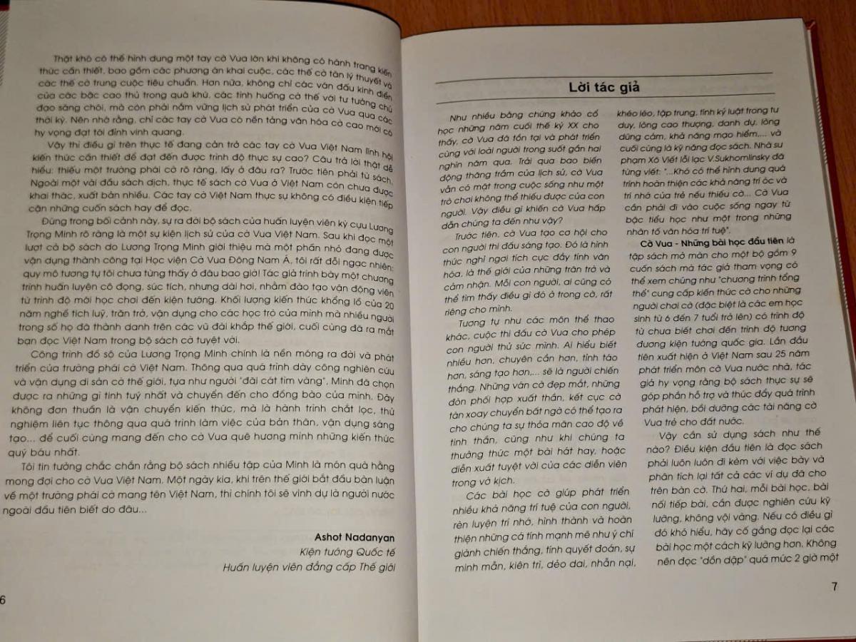 Cờ vua - những bài học đầu tiên là tập sách mở màn cho 1 bộ gồm 9 cuốn sách mà tác giả tham vọng có thể xem chúng như "chương trình tổng thể" cung cấp kiến thức cờ cho những người chơi cờ (đặc biệt là các em học sinh từ 6 đến 7 tuổi trở lên) có trình độ từ chưa biết đến tương đương kiện tướng quốc gia. Lần đầu tiên xuất hiện ở Việt Nam sau 25 năm phát triển môn cờ vua nước nhà, tác giả hy vọng rằng bộ sách thực sự sẽ góp phần hỗ trợ và thúc đẩy quá trình phát hiện, bồi dưỡng các tài năng cờ vua trẻ cho đất nước...
