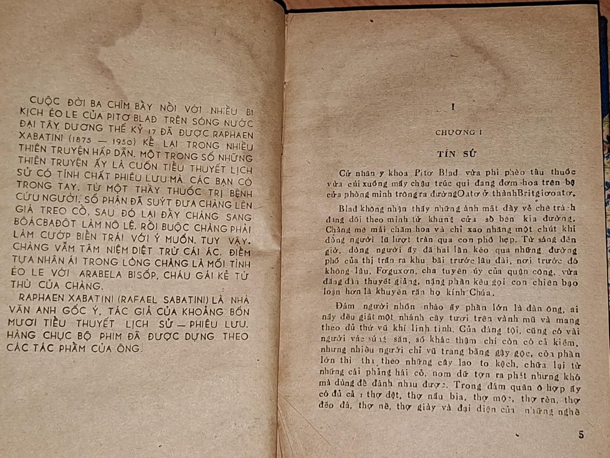 CUỘC ĐỜI BA CHÌM BẢY NỔI VỚI NHIỀU BI K|CH ÉO LE CÙA PETER BLAĐ TRÊN SÓNG NƯỚC ĐẠI TÂY DƯƠNG THẾ KÝ 17 ĐÃ ĐƯỢC RAPHAEN XABATINI (1875 - 1950) KỂ LẠI_TRONG NHIỀU THIÊN TRUYỆN HẤP DẪN. MỘT TRONG SỐ NHỮNG THIÊN TRUYỆN ẤY LÀ CUỐN TIỂU THUYẾT LỊCH SỬ CÓ TÍNH CHẤT PHIÊU LƯU MÀ CÁC BẠN CÓ TRONG TAY. TỪ MÔT THẦY THUỐC TRỊ BỆNH CỨU NGƯỜI, SỐ PHẬN ĐÃ SUÝT ĐƯA CHÀNG LÊN GIÁ TREO CỔ, SAU ĐÓ LẠI ĐẦY CHÀNG SANG BÔÁCBAĐÔT LÀM NÔ LỆ, RỒI BUỘC CHÀNG PHẢI LÀM CƯỚP BIỂN TRÁI VỚI Ý MUỐN. TUY VẬY CHÀNG VẪN TÂM NIỆM DIỆT TRỪ CÁI ÁC. ĐIỂM TỰA NHÂN ÁI TRONG LÒNG CHÀNG LÀ MỐI TÌNH ÉO LE VỚI ARABELA BISỐP, CHÁU GÁI KÉ TỬ THÙ CỦA CHÀNG.