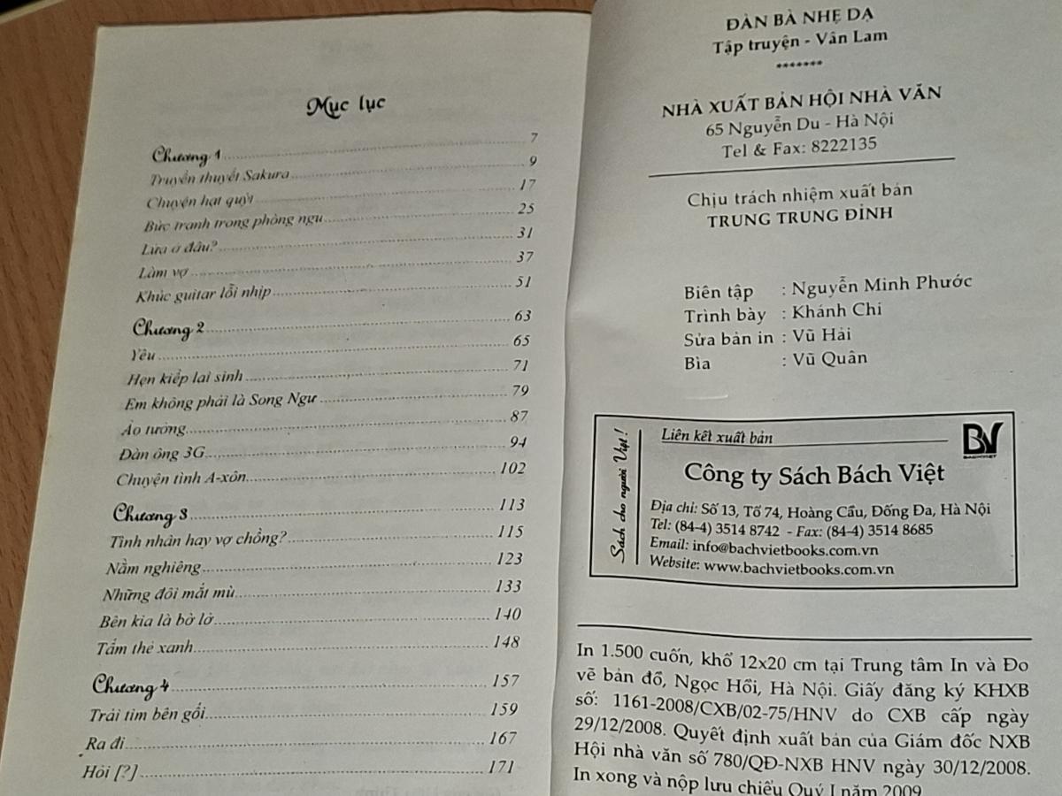 Đàn bà nhẹ dạ( tập truyện ngắn ) - Vân Lam - NXB HỘI NHÀ VĂN 2008, 180 trang, khổ 12x19cm.