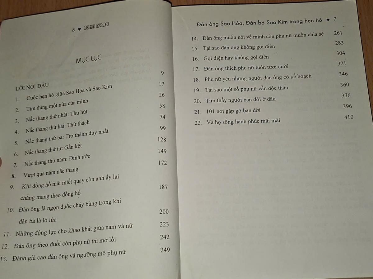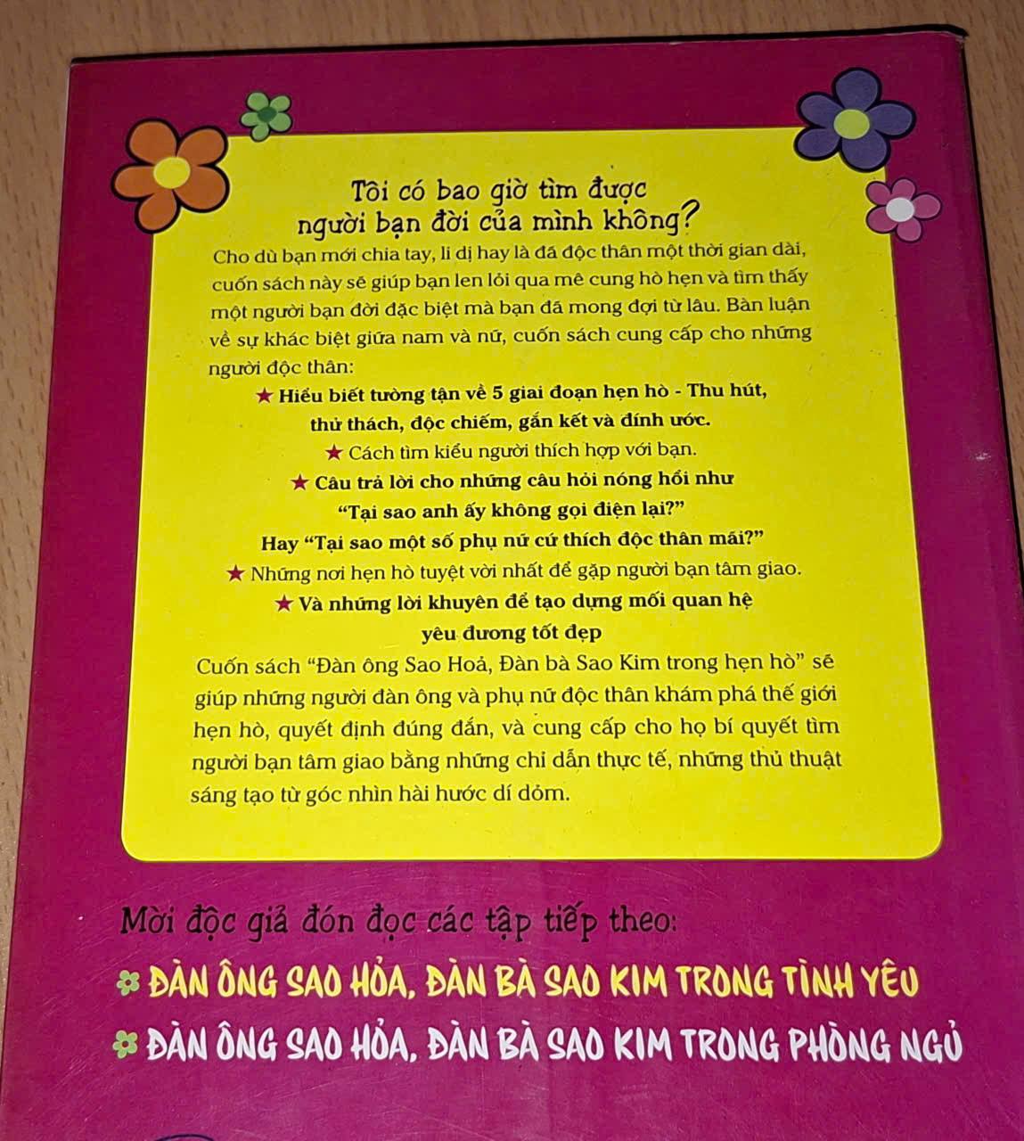 Cuốn sách "Đàn ông Sao Hỏa, Đàn bà Sao Kim trong hẹn hò" sẽ giúp những người đàn ông và phụ nữ độc thân khám phá thế giới hẹn hò, tạo ra các quyết định đúng đắn, và cung cấp cho họ bí quyết tìm người bạn tâm giao bằng những chỉ dẫn thực tế, những kỹ thuật sáng tạo từ góc nhìn hài hước dí dỏm.