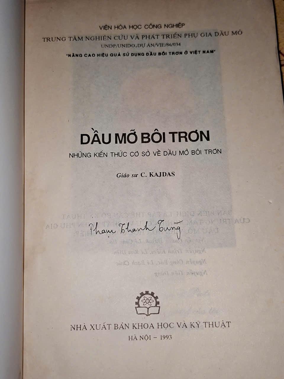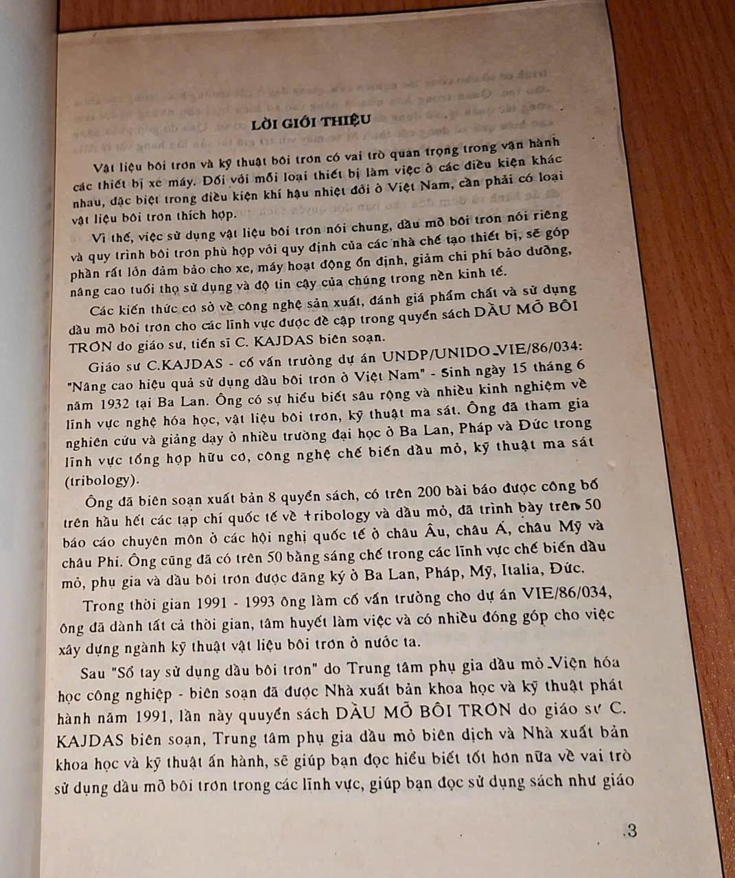 Dầu mỡ bôi trơn ( Những kiến thức cơ sở về dầu mỡ bôi trơn ) - GS C. Kajdas - NXB KHOA HỌC VÀ KỸ THUẬT 1993, 304 trang, khổ 15x22,5cm