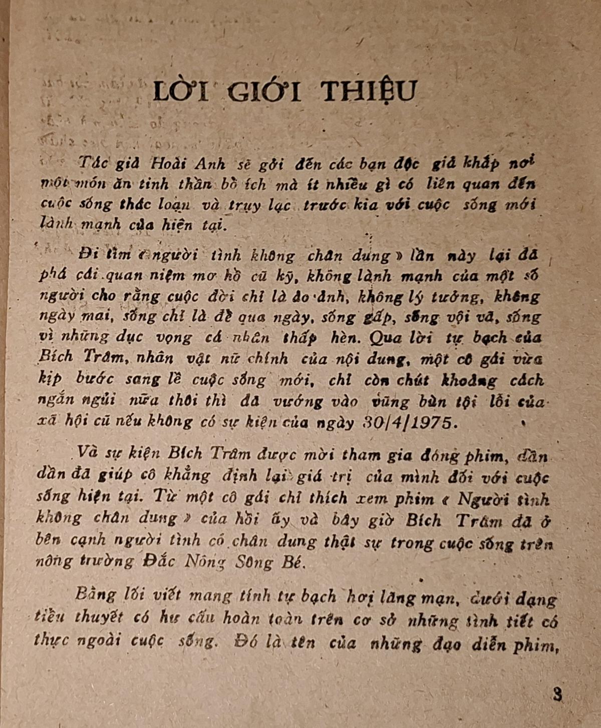 Đi tìm người tình không chân dung ( tiểu thuyết ) - Hoài Anh - NXB TỔNG HỢP SÔNG BÉ 1988, 142 trang, khổ 13x19cm