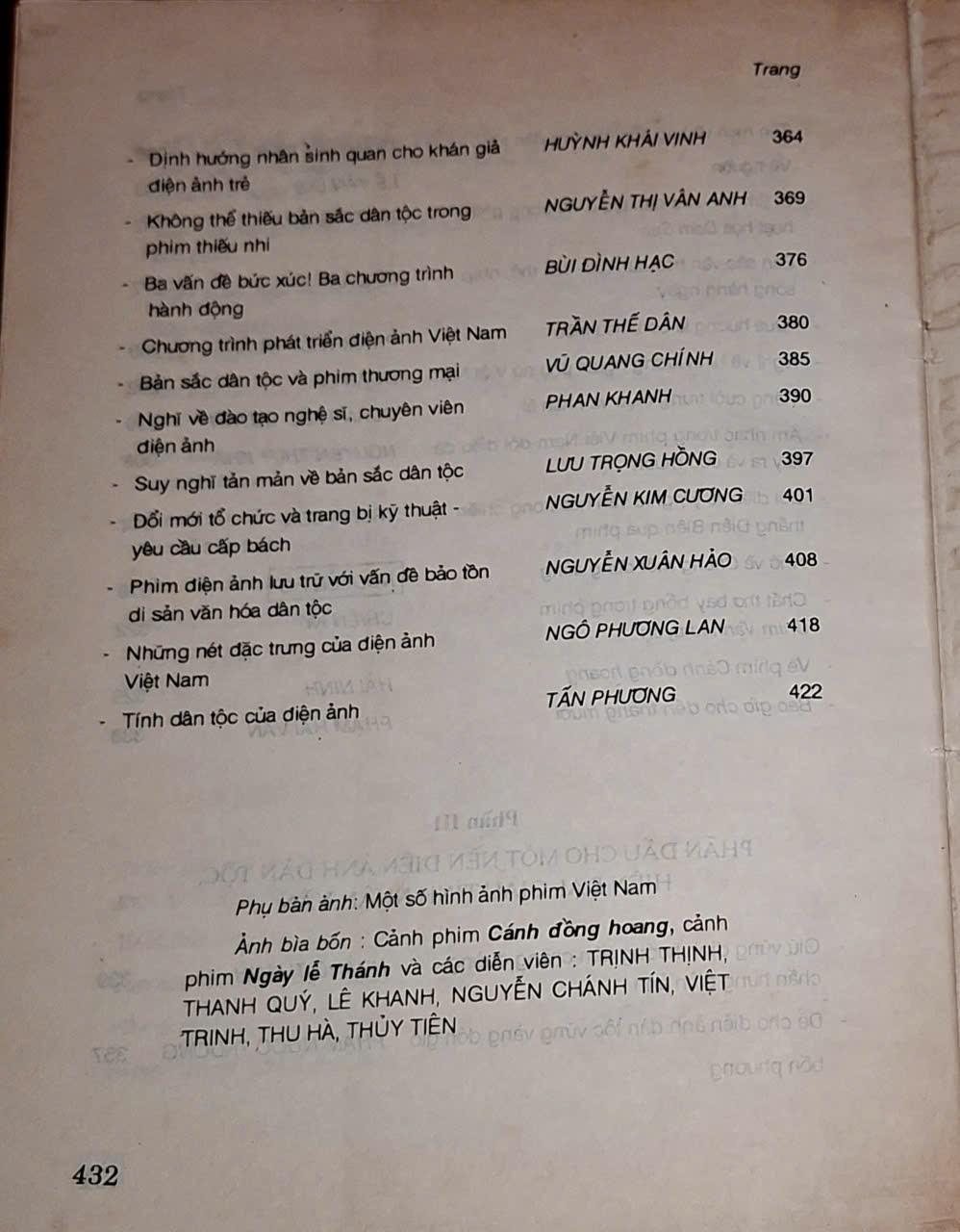 Điện ảnh và bản sắc văn hóa dân tộc ( mấy vấn đề lý luận và thực tiễn ) - VIỆN NGHỆ THUẬT VÀ LƯU TRỮ ĐIỆN ẢNH VIỆT NAM & NXB VĂN HOÁ THÔNG TIN 1994, 434 trang, khổ 14,5x20,5cm.