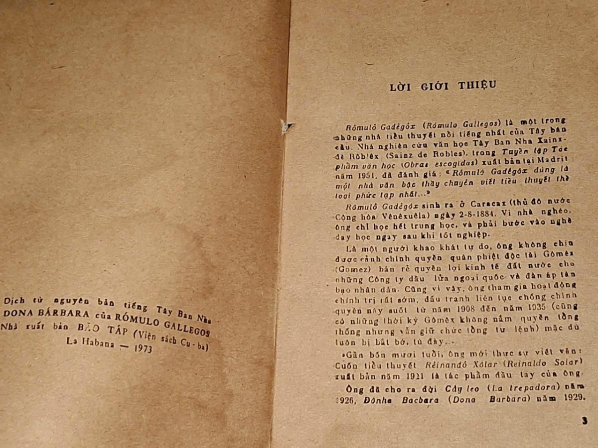 Tác giả : Rômulô Gađêgôx ( Bàng Thúc Long, Nguyễn Đình Hiền dịch từ nguyên bản tiếng Tây Ban Nha )