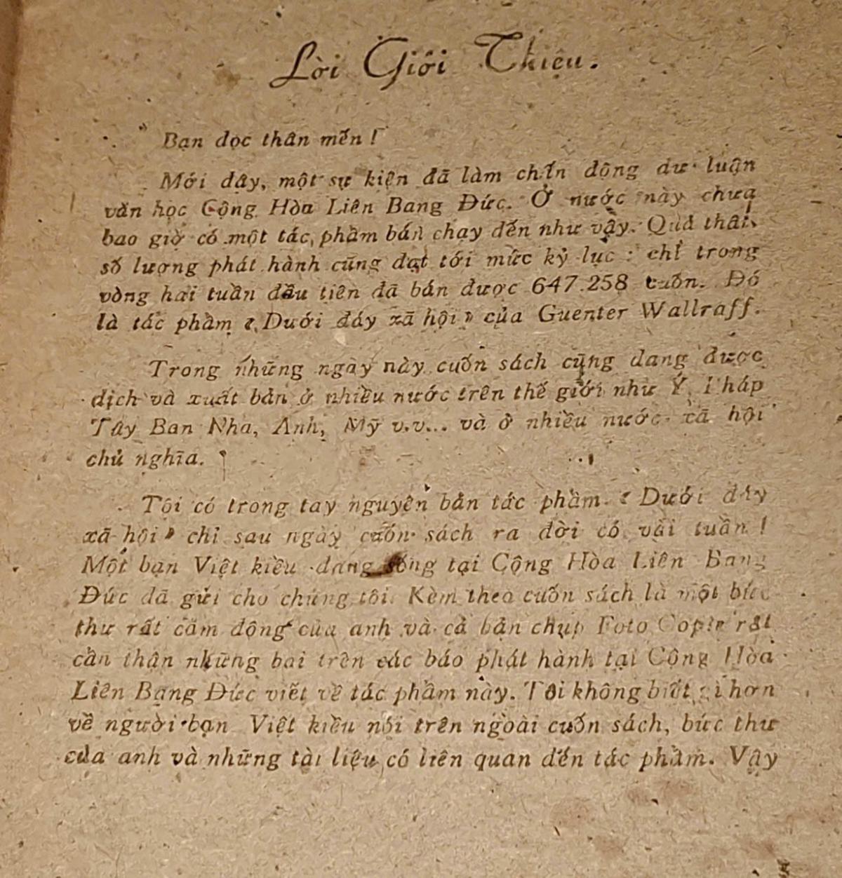 Dưới đáy xã hội - Guenter Wallraff ( Nguyễn Quang Thọ dịch ) - NXB TỔNG HỢP SÔNG BÉ 1986, 276 trang, khổ 13x19cm