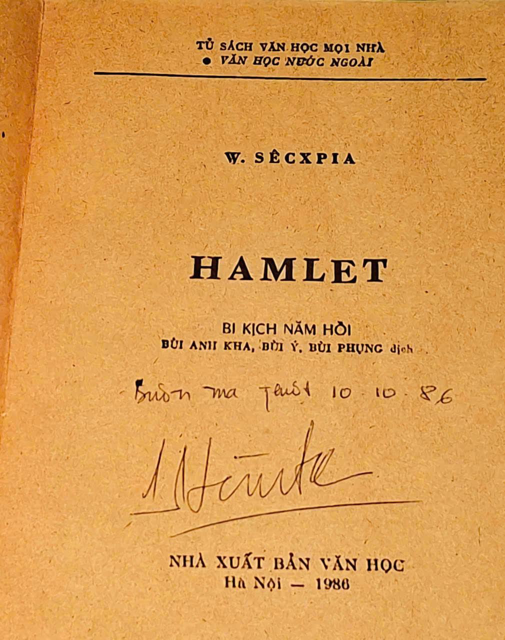 Hamlet( Bi kịch 5 hồi ) - W. Shakespeare ( Bùi Phụng, Bùi Ý , Bùi Anh Kha dịch ) - NXB VĂN HỌC 1986, 200 trang, khổ 13x19cm