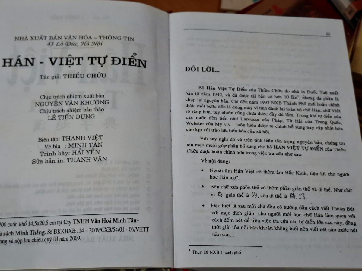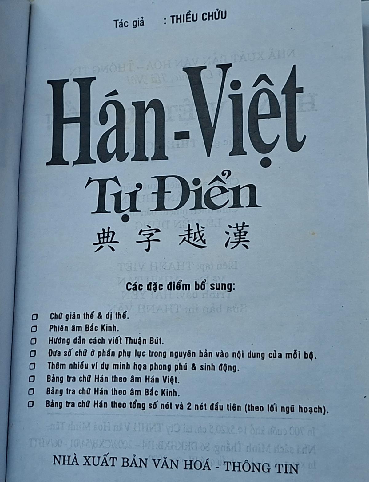 Hán Việt Tự Điển - Thiều Chữ - NXB VĂN HÓA THÔNG TIN 2009, 1286 trang, khổ 14,5x20,5cm