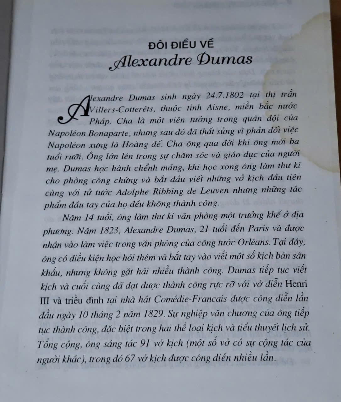 Tác giả : Alexandre Dumas ( Phạm Bích Liễu, Vũ Thu Hà dịch )