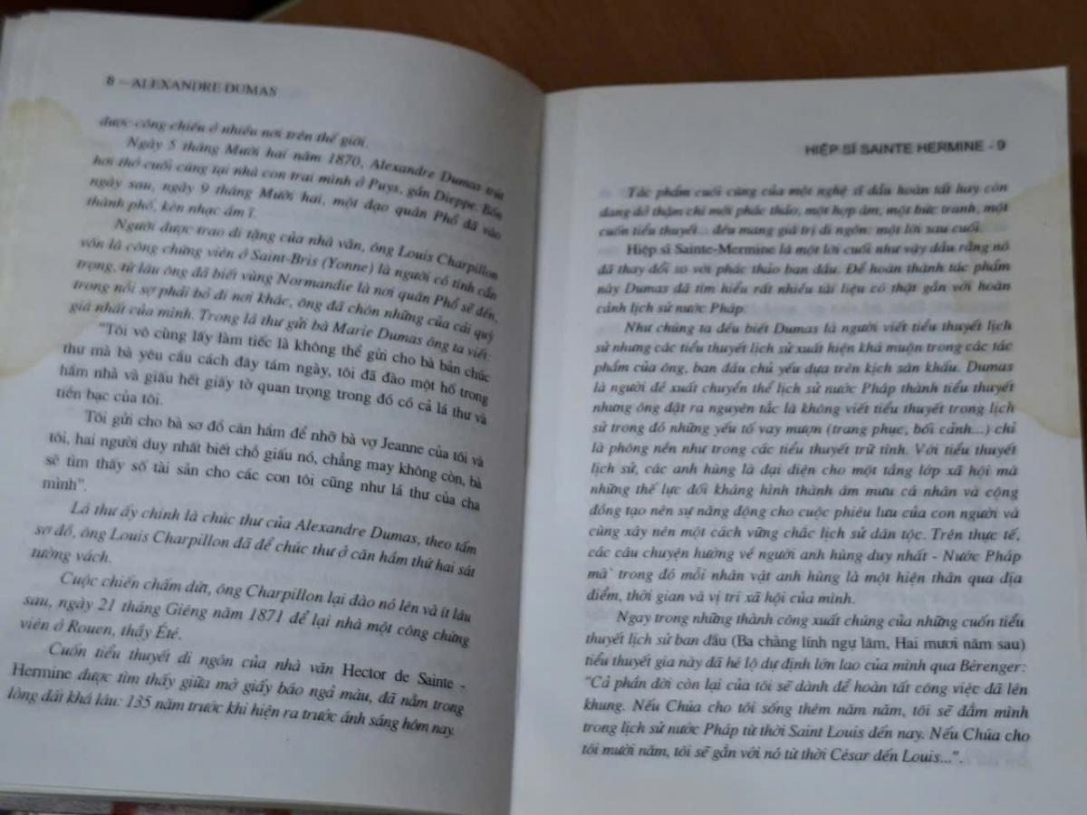 Năm 2005, một cơn sốt dâng lên tại Pháp và trên toàn thế giới như ở các nước Mỹ, Trung Quốc, Nga về sự xuất hiện của bộ tiểu thuyết cuối cùng của Alexandre Dumas với 1230 trang, 118 chương: Hiệp sĩ Sainte-Hermine (Tên nguyên tác là Le chevalier de Saite-Hermine). Cuốn sách đã được lãng quên trong thư viện quốc gia Pháp suốt 135 năm trước khi được đưa ra với công chúng.