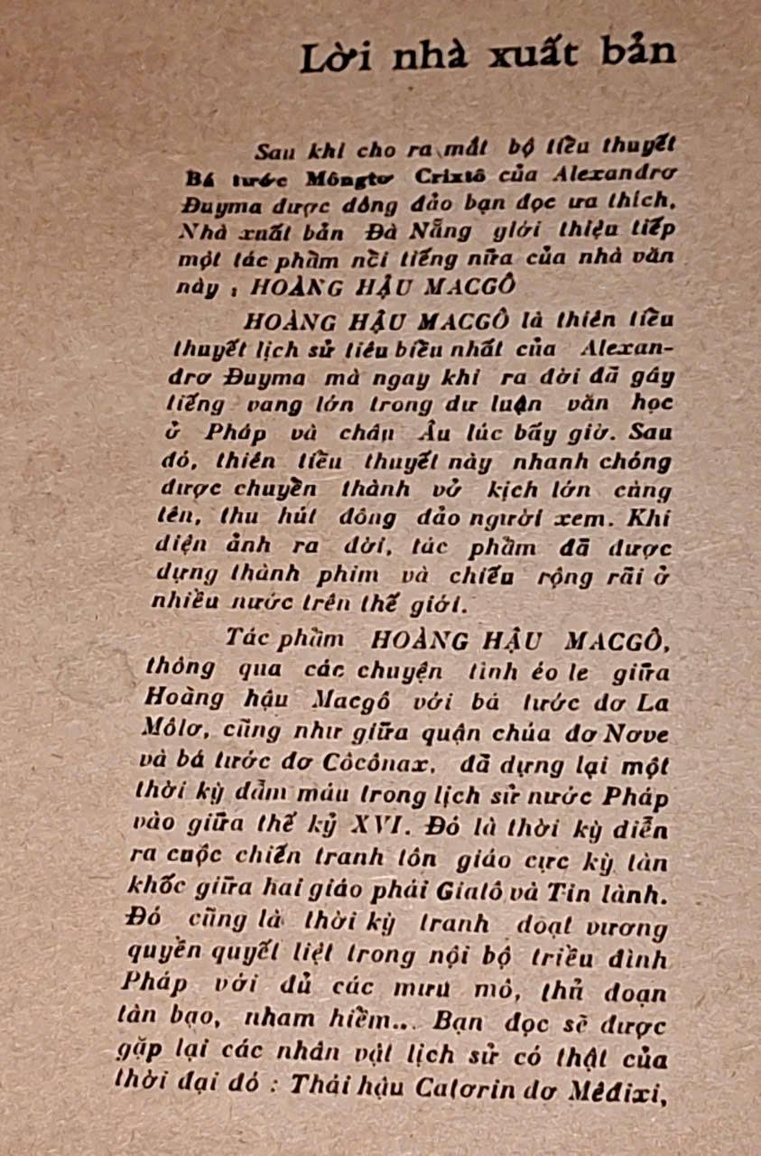 Tác giả: Alexadro Duyma Dịch: Tố Châu NXB: Đà Nẵng 1988, 960 trang, khổ 13x19cm Tình trạng: Sách làm lại gáy, ruột tốt. Truyện hay 140k- 2 tập
