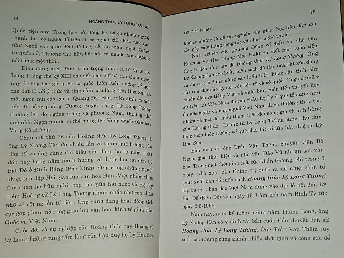 Hoàng thúc Lý Long Tường ( tiểu thuyết lịch sử ) - Khương Vũ Hạc (Trần Văn Thêm dịch ) - NXB CHÍNH TRỊ QUỐC GIA 2010, 472 trang, khổ 14,5x20,5cm.