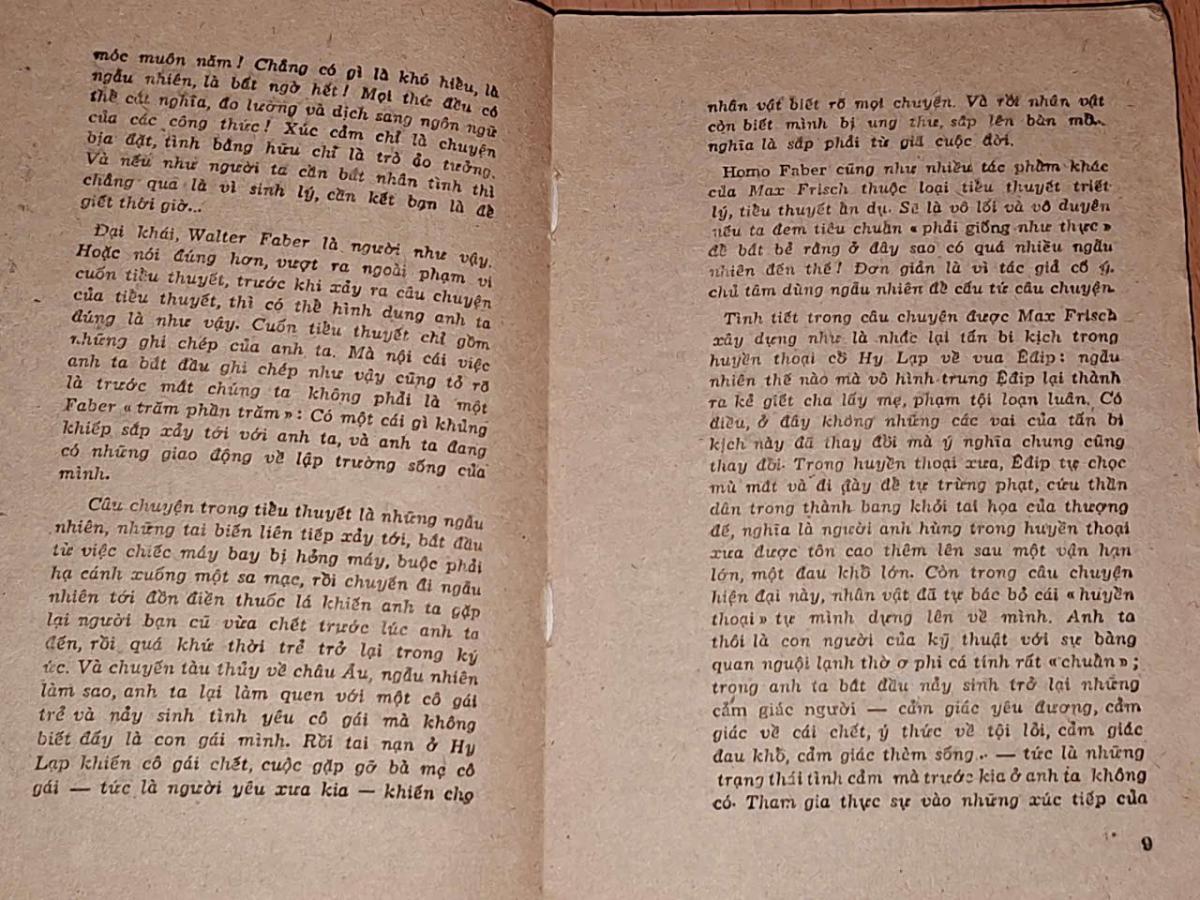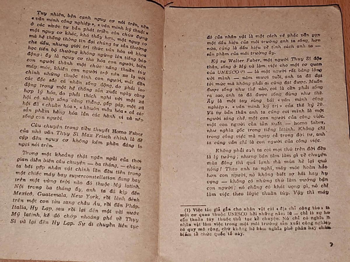 Cốt truyện bắt đầu từ chuyến bay từ New York với một chiếc "Super-Constellation". Chuyến bay khởi hành trễ. Trong chuyến bay Walter Faber làm quen với chàng trai trẻ Herbert Hencke, em của Joachim, người bạn cũ thời sinh viên cũng là người đã cưới Hanna, tình yêu thời niên thiếu của Faber. Để ám chỉ con người mang thế giới quan duy lý, hoàn toàn tin vào kỹ thuật của Walter Faber, Hanna đặt tên gọi anh ta là "Homo Faber". (xem khái niệm Homo faber trong tương quan triết giải trong nhân chủng học).