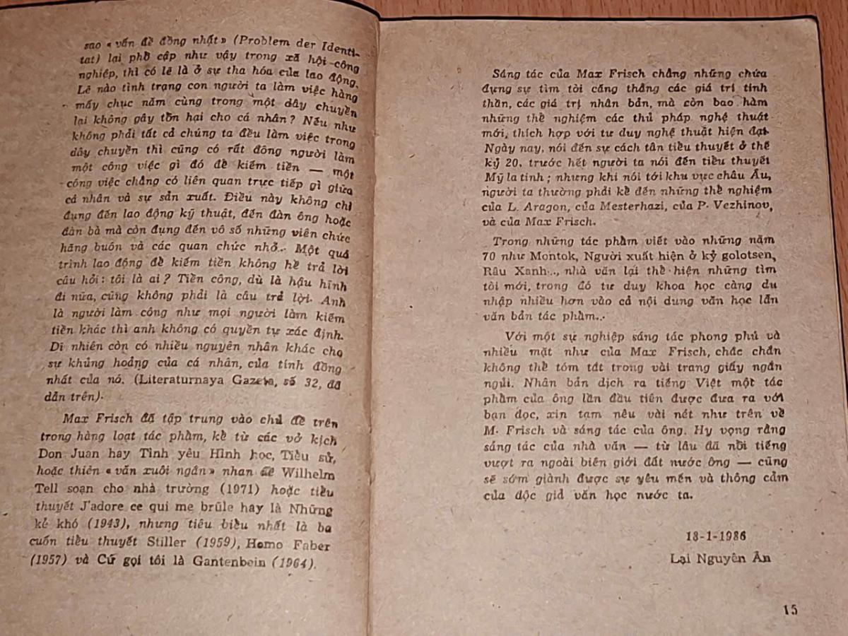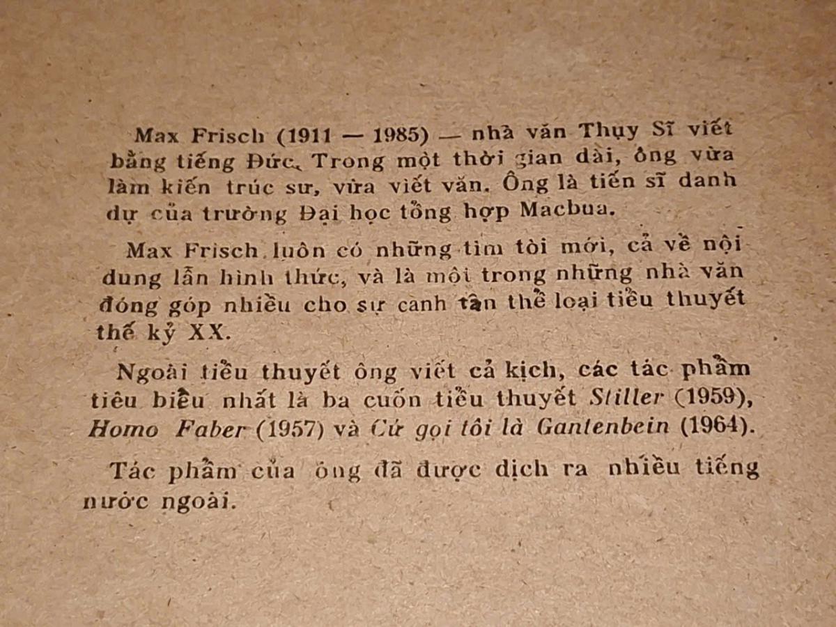 Tác giả: Max Frisch ( Hoàng Hữu Phê, Đặng Hồng Trung dịch )