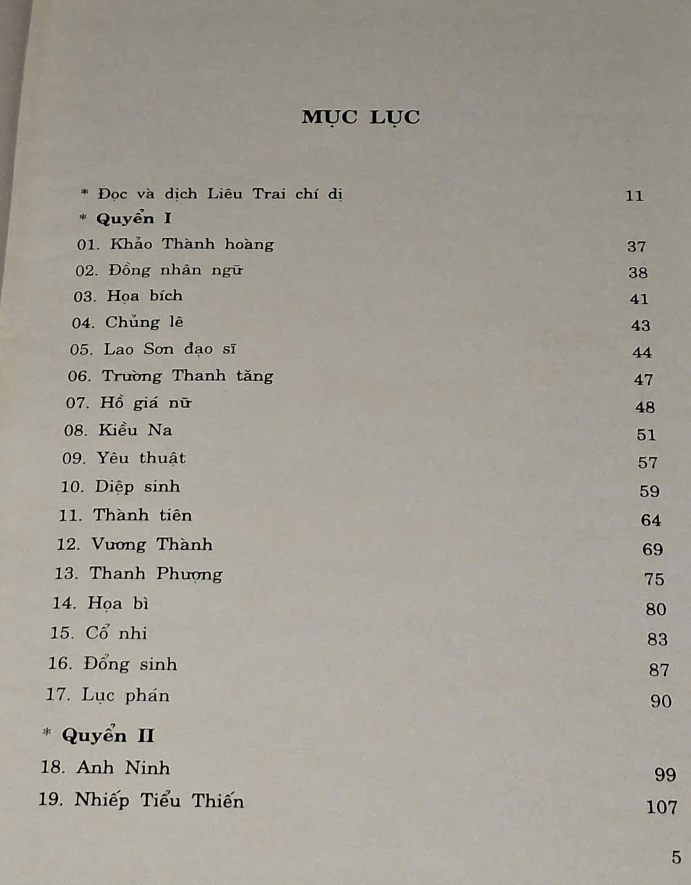 Bản dịch trọn bộ này gồm 432 truyện trong Liêu Trai Chí Dị và 68 truyện trong Liêu Trai Chí Dị Thập Di, tất cả gồm 500 truyện.