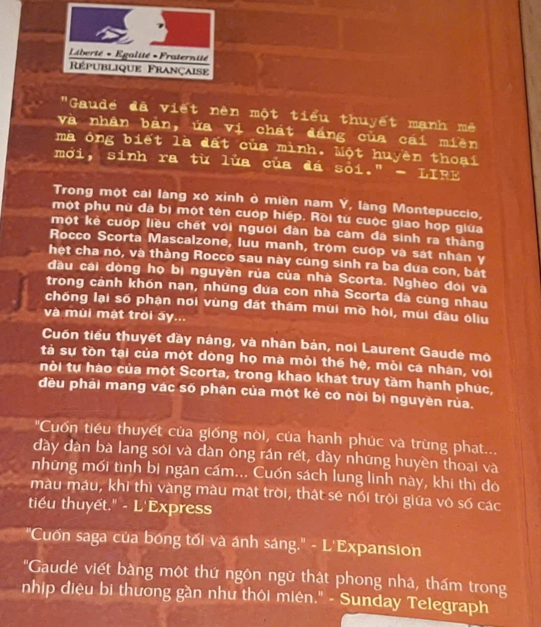 Trong một cái làng xó xỉnh ở miền nam nước Ý , làng Montepuccio , một phụ nữ đã bị một tên cướp hiếp .Rồi từ cuộc giao hợp giữa một kẻ cướp liều chết với người đàn bà câm đã sinh ra thằng Rocco Scorta Mascalzone , lưu manh , trộm cướp và sát nhân y hệt cha nó , và thằng Rocco sau này cũng sinh ra ba đứa con , bắt đầu cái dòng họ bị nguyền rủa của nhà Sorta .Nghèo đói và trong cảnh khốn nạn , những đứa con nhà Scorta đã cùng nhau chống lại số phận nơi vủng đất thấm mùi mồ hôi , mùi dầu ôliu và mùi mặt trời ấy ......