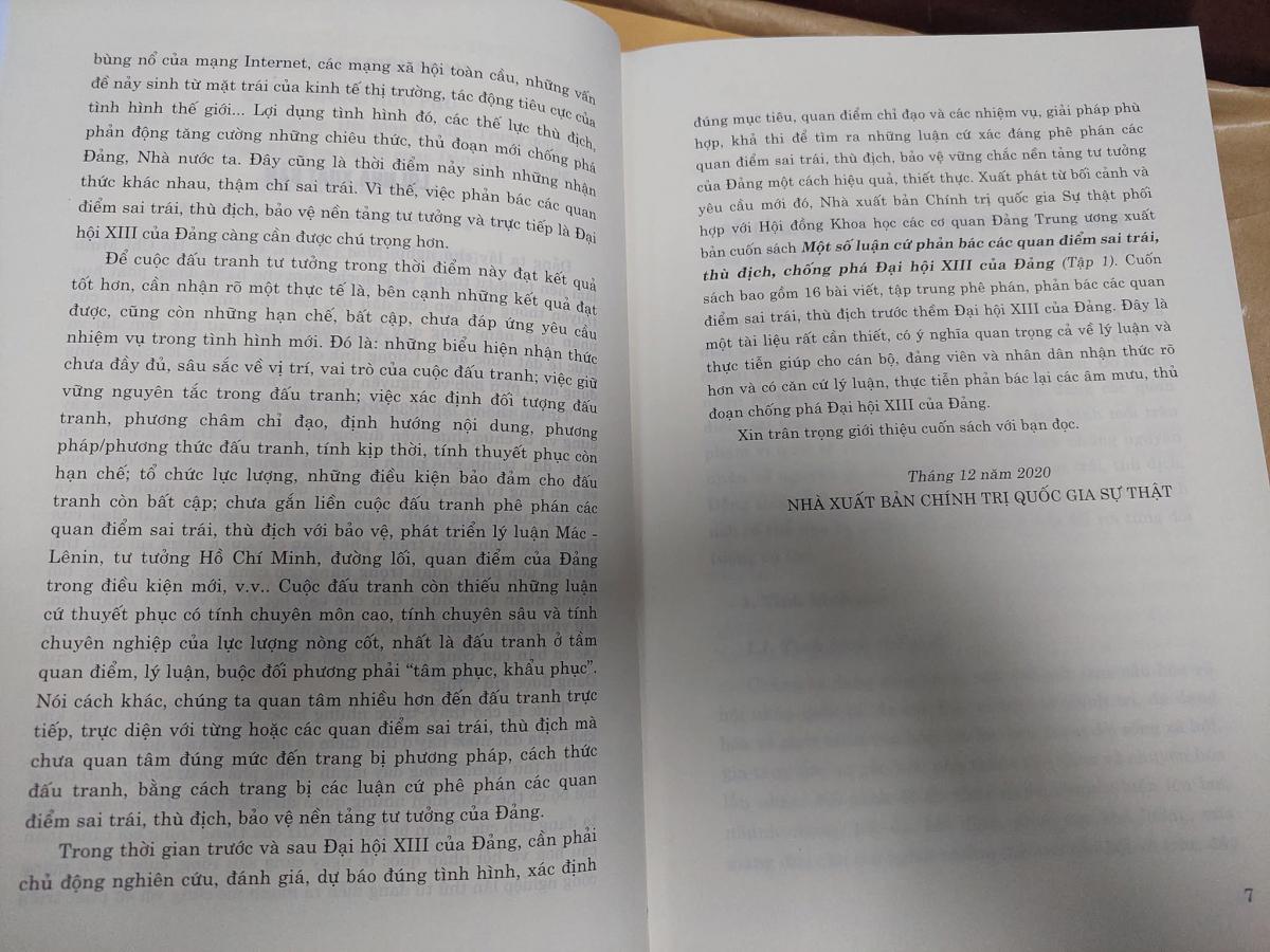 Một số luận cứ phản bác các quan điểm sai trái, thù địch, chống phá Đại hội XIII của Đảng ( Tập 1 ) - Nxb Chính trị quốc giá Sự Thật 2020 , bìa cứng : 324 trang , khổ 16×24cm.