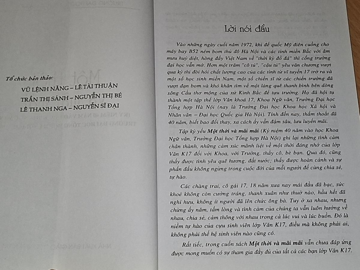 Một thời và mãi mãi ( kỷ niệm 40 năm vào học khoa ngữ văn trường đại học tổng hợp Hà Nội 1972-2012 ) - NHIỀU TÁC GIẢ - NXB GIÁO DỤC VIỆT NAM 2012, 330 trang, khổ 16x24cm.