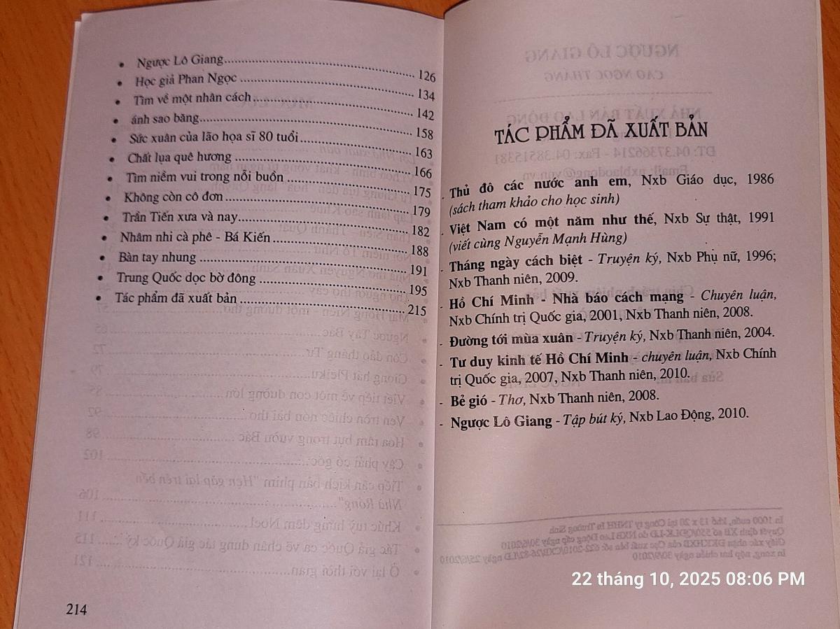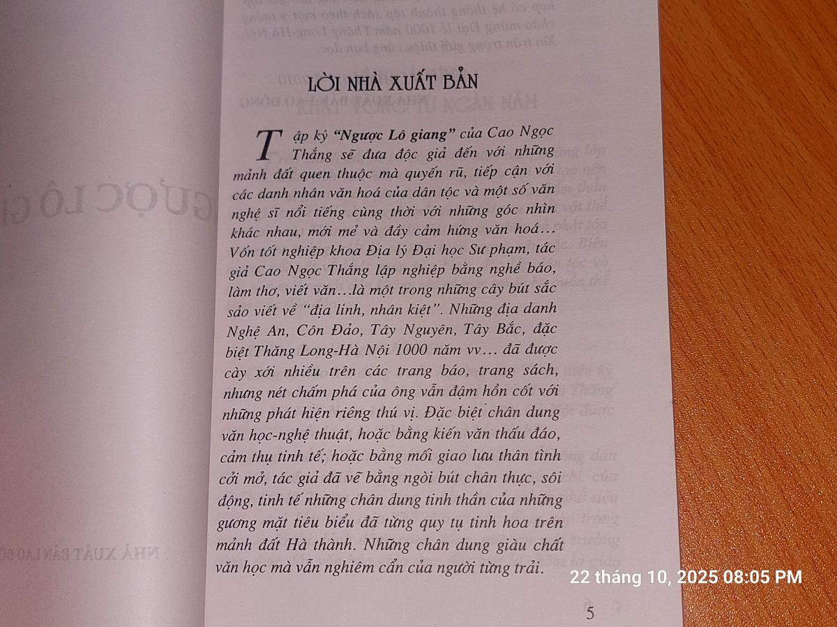 Ngược Lô Giang ( bút ký ) - Cao Ngọc Thắng - NXB LAO ĐỘNG 2010, 216 trang, khổ 13x20cm