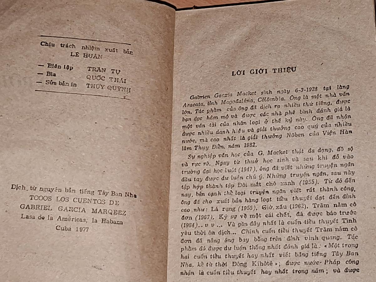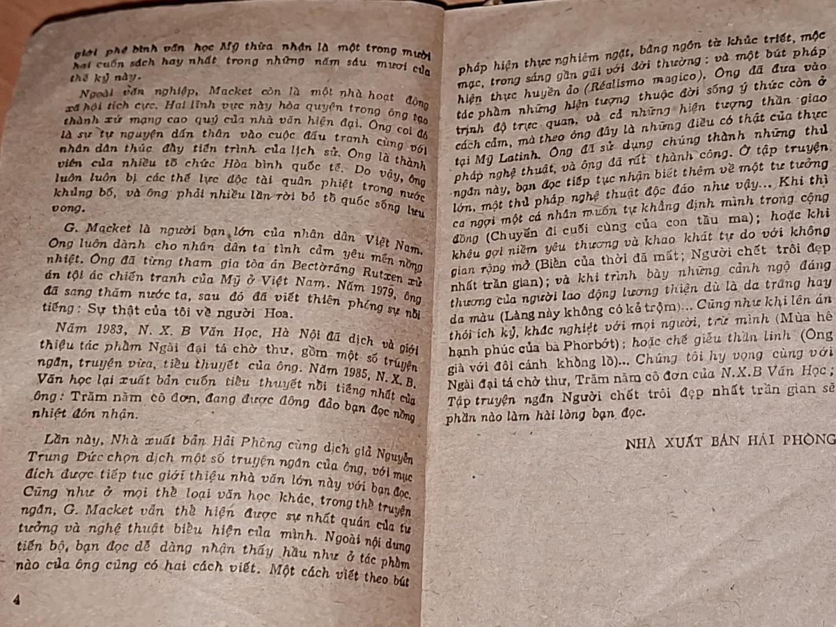 Người chết trôi đẹp nhất trần gian ( tập truyện ) - G. G. Marquez ( Nguyễn Trung Đức dịch ) - NXB HẢI PHÒNG 1987, 124 trang, khổ 13x19cm.