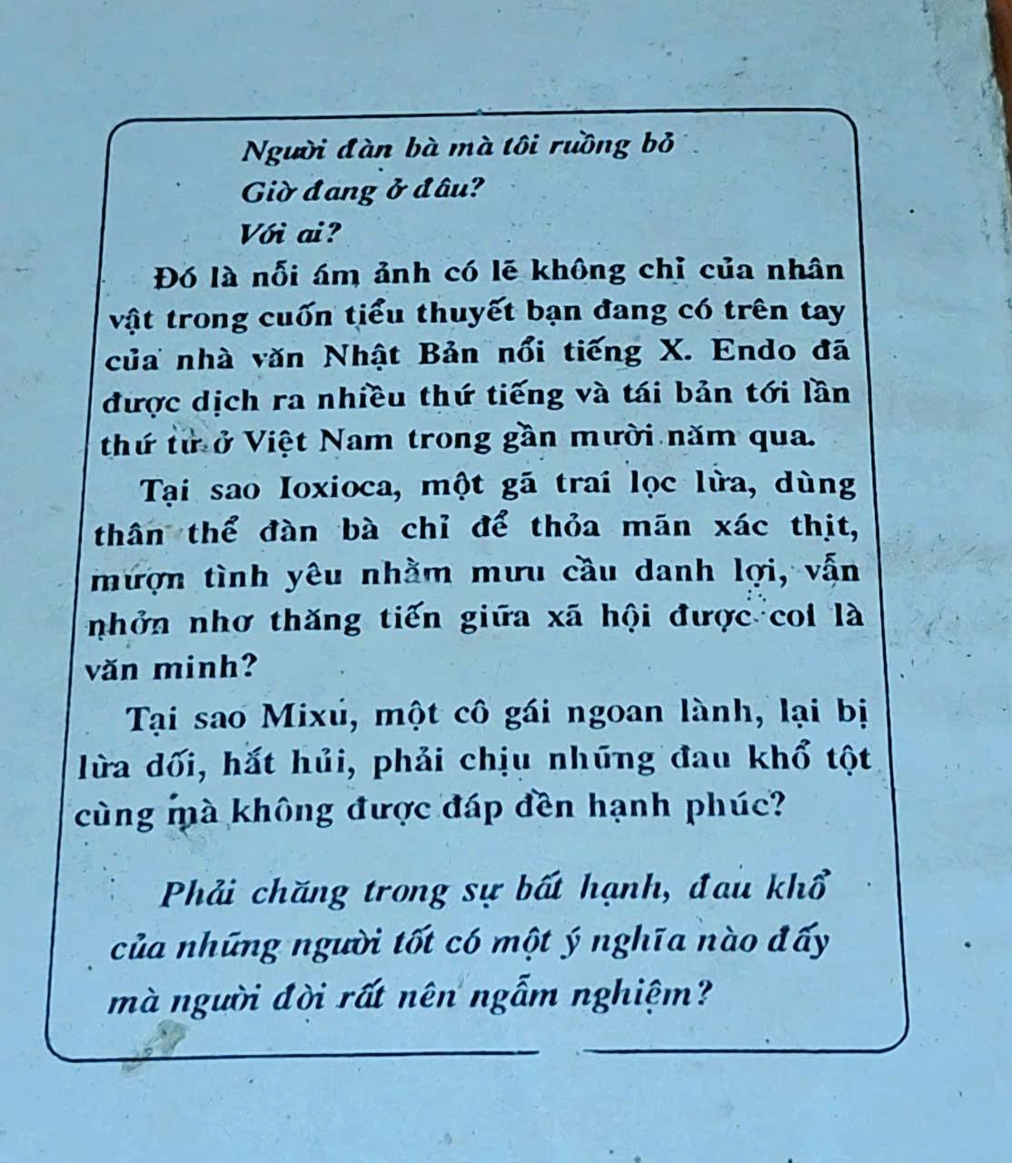 Tác giả: Xiu-Xa-cu En-đo ( Đoàn Tử Huyền, Thái Bá Tân dịch ) NXB: Lao Động 1993, 240 trang, khổ 13x19cm Tình trạng: Sách đẹp, nguyên vẹn . Gáy bị tróc chút.