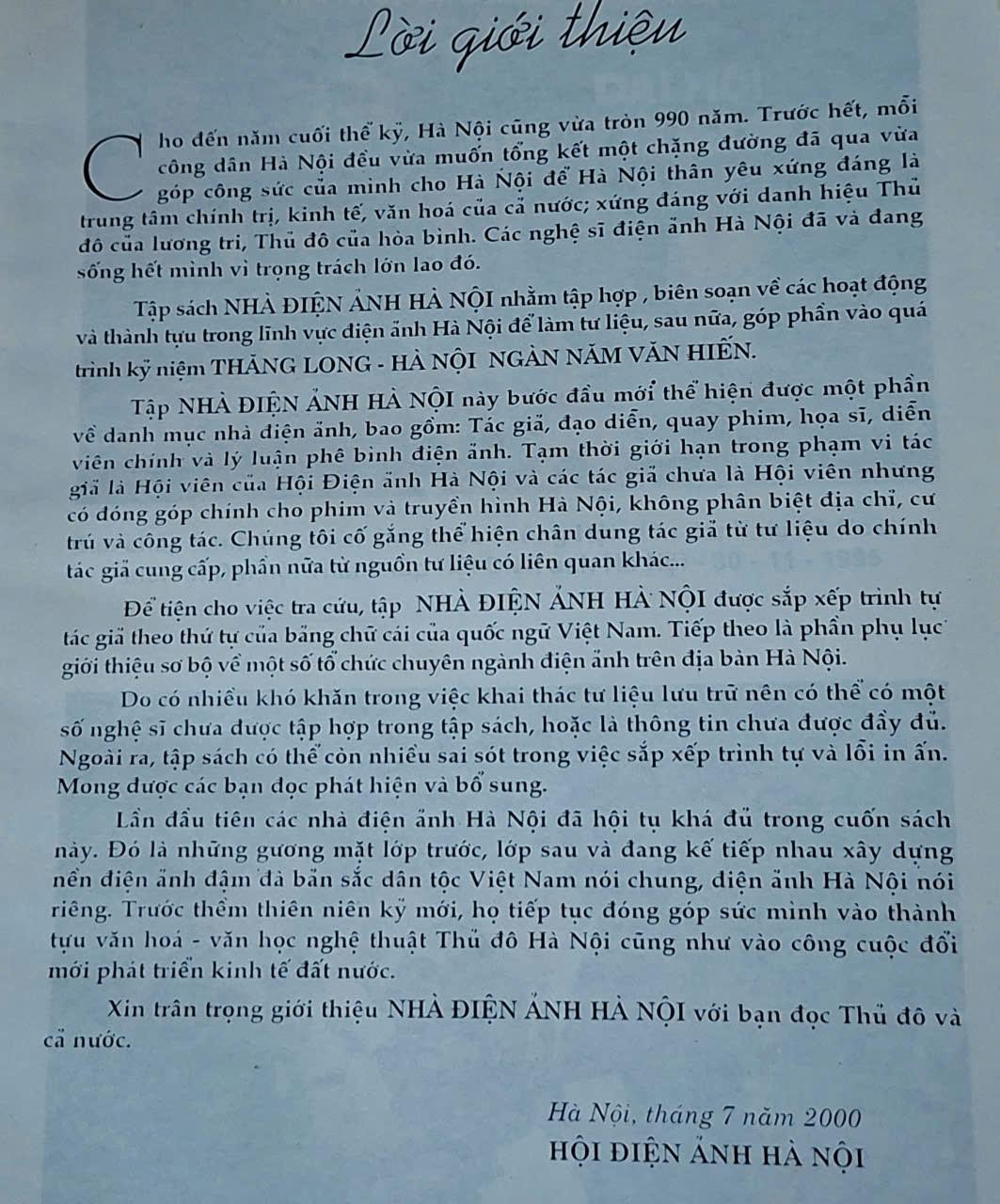 Nhà điện ảnh Hà Nội - Hội Điện Ảnh Hà Nội - 2000 - 318 trang, khổ 16x24cm