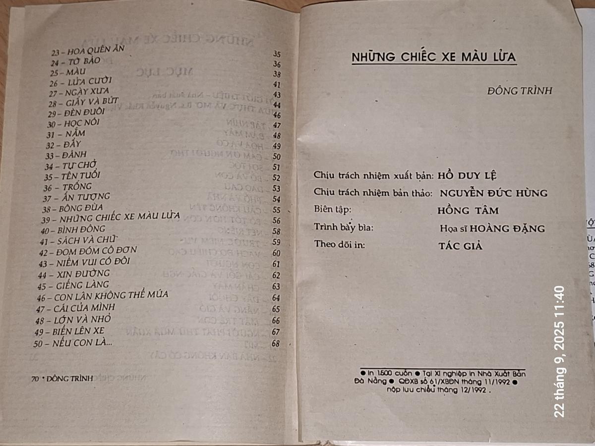 Những Chiếc Xe Màu Lửa - Đông Trình - NXB ĐÀ NẴNG 1992, 72 trang, khổ 13x19cm