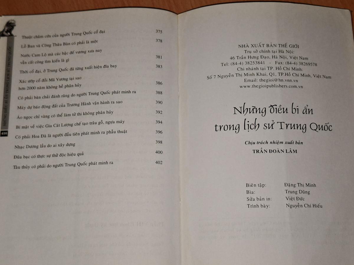 Những Điều Bí Ẩn Trong Lịch Sử Trung Quốc - Trịnh Trung Hiếu, Nguyễn Thanh Hà sưu tầm - NXB THẾ GIỚI 2012, 412 trang, khổ 15x22cm.