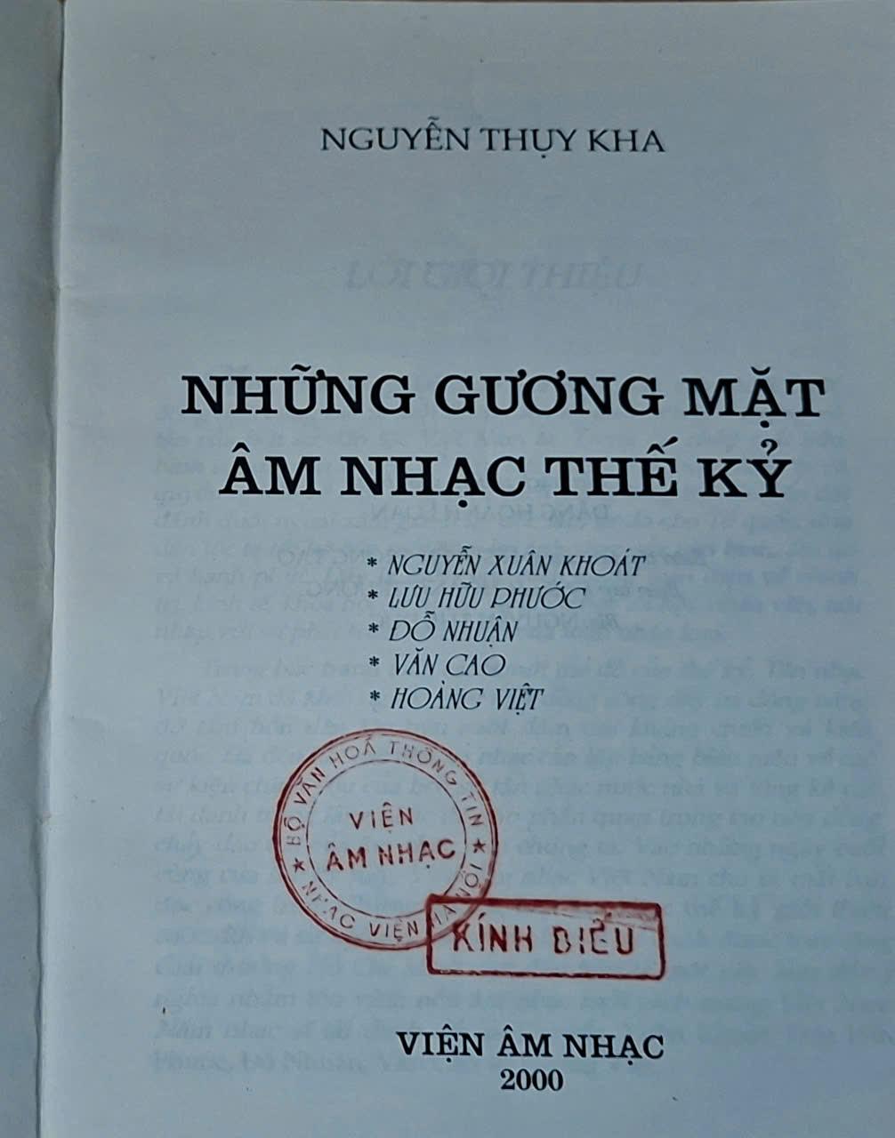 Những gương mặt âm nhạc thế kỷ ( Nguyễn Xuân Khoát - Lưu Hữu Phước - Đỗ Nhuận - Văn Cao - Hoàng Việt ) - Nguyễn Thụy Kha - VIỆN ÂM NHẠC 2000, 612 trang, khổ 14,5x20,5cm .