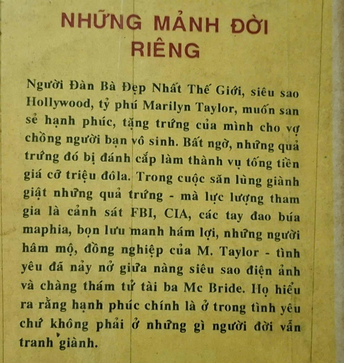 Người Đàn Bà Đẹp Nhất Thế Giới, siêu sao Hollywood, tỷ phú Marilyn Taylor, muốn san sẻ hạnh phúc, tặng trứng cúa mình cho vợ chồng người bạn vô sinh. Bất ngờ, những quả trứng đó bị đánh cắp làm thành vụ tống tiền giá cổ triệu đôla. Trong cuộc săn lùng giành giật những quả trứng - mà lực lượng tham gia là cảnh sát FBI, CIA, các tay đao búa maphia, bọn lưu manh hám lợi, những người hâm mộ, đồng nghiệp của M. Taylor - tình yêu đá nảy nở giữa nàng siêu sao điện ảnh và chàng thám tử tài ba Mc Bride. Họ hiểu ra rằng hạnh phúc chính là ở trong tình yêu chứ không phải ở nhưng gì người đời vẫn tranh giành.