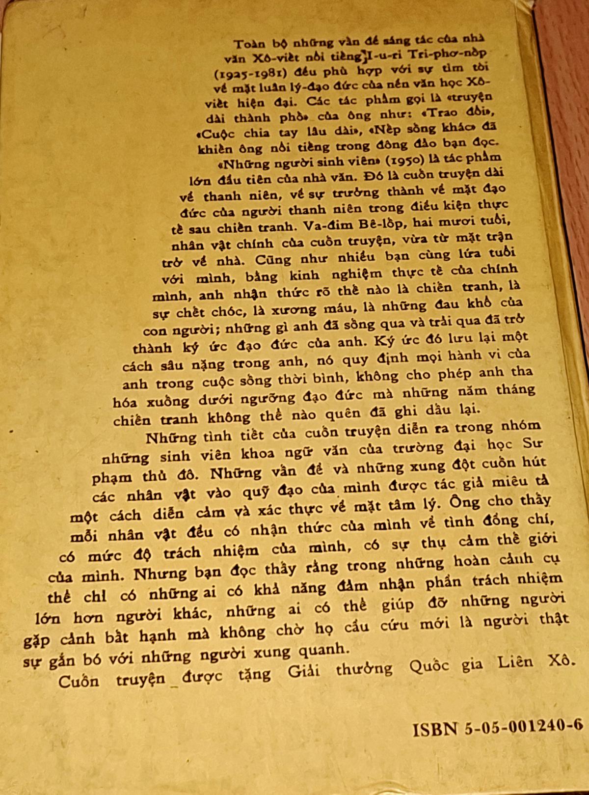 Những Người Sinh Viên ( truyện dài ) - Iu. Tri-pho- Nốp ( Ngô Hào Hiệp, Nguyễn Minh Chí dịch ) - NXB CẦU VỒNG MÁT-XCƠ-VA 1987, 472 trang, khổ 15x22cm.