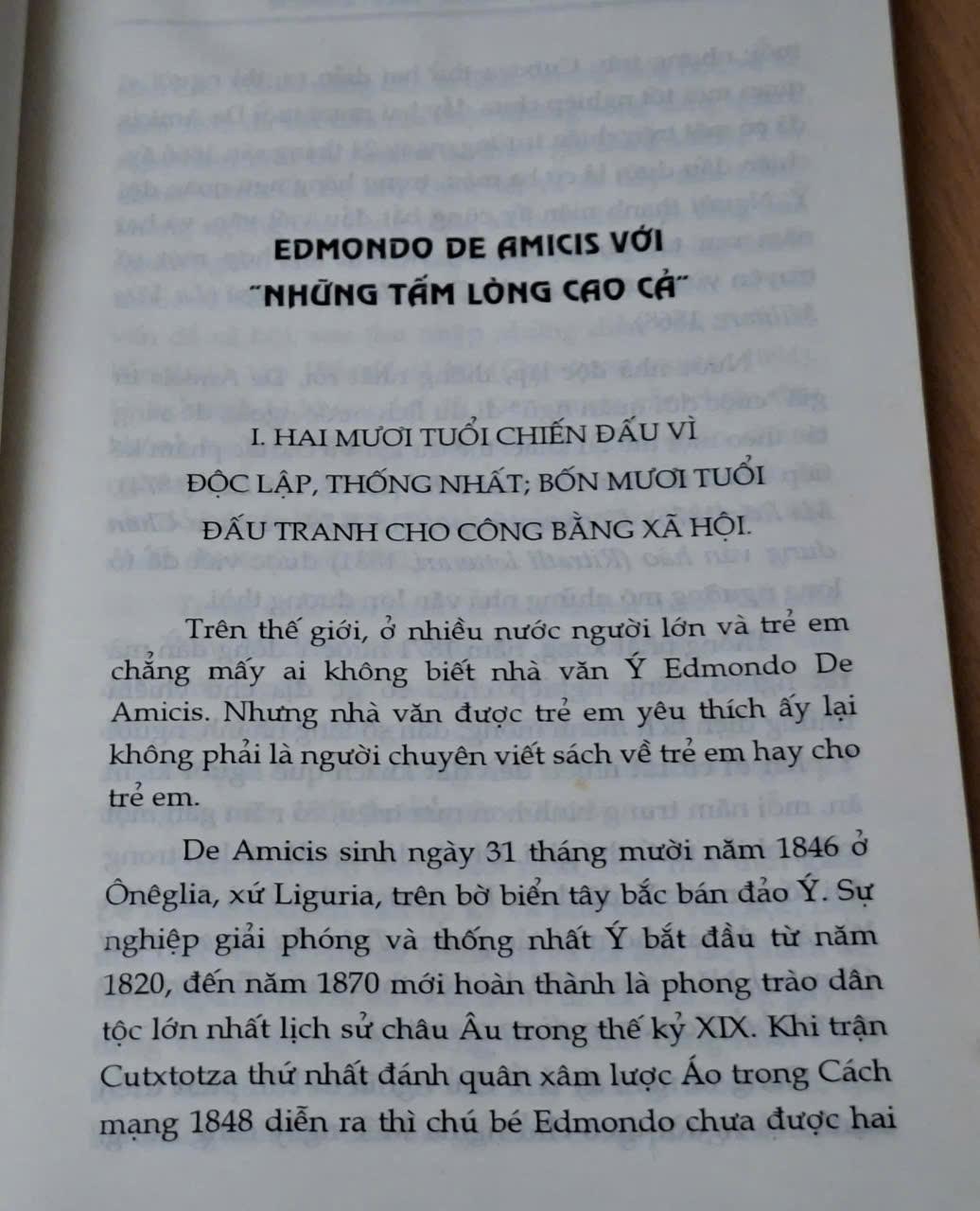 Edmondo De Amicis (1846 - 1908 ) sinh tại Oneglia, thành phố biển Imperia của xứ Liguria, Italia. Ông không chỉ là một nhà văn yêu nước nồng nàn mà còn rất quan tâm đến vấn đề giáo dục.