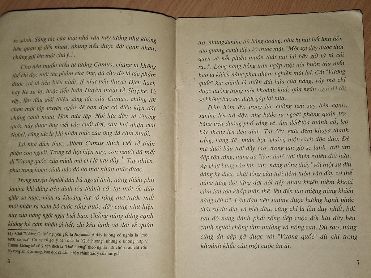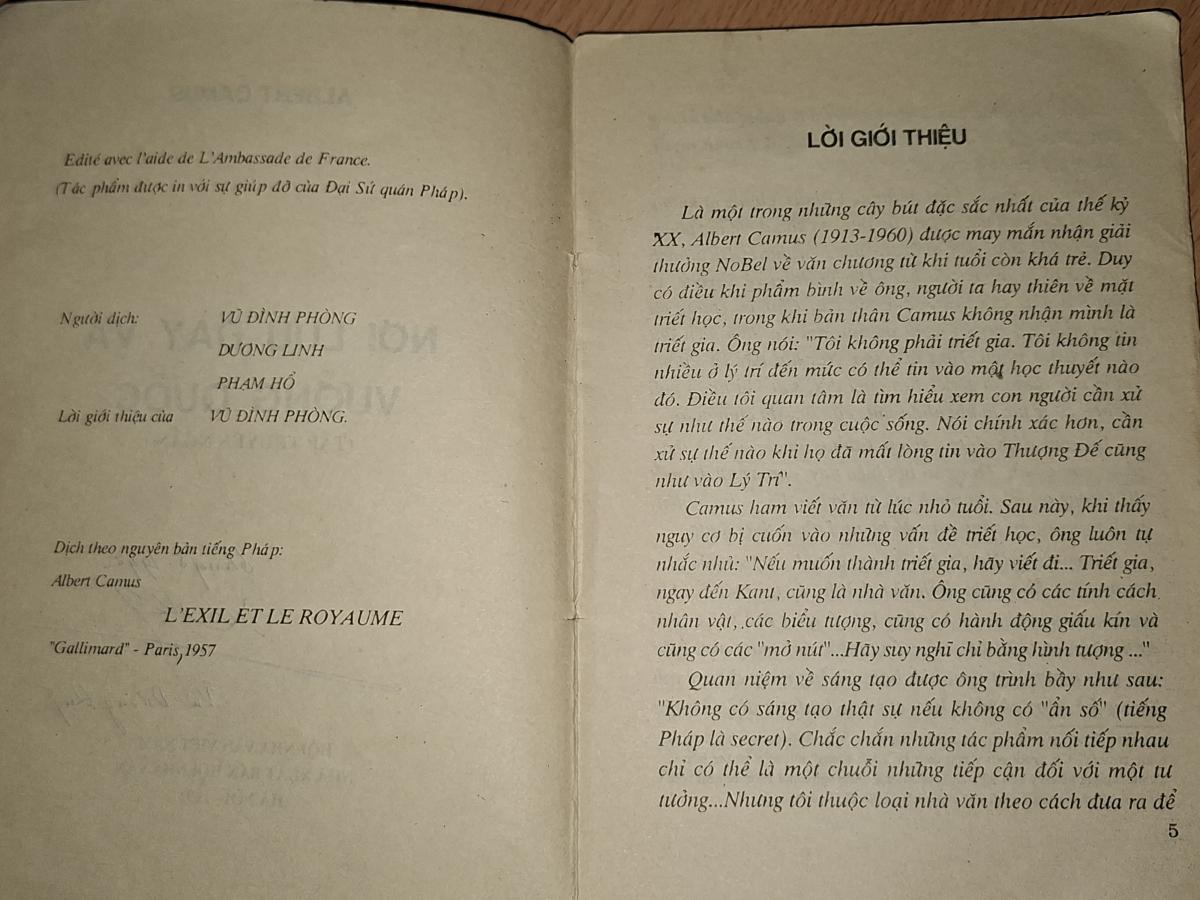 Nơi lưu đày và vương quốc ( tập truyện ngắn ) - Albert Camus ( Vũ Đình Phòng, Dương Linh, Phạm Hổ dịch ) - NXB HỘI NHÀ VĂN 1992, 208 trang, khổ 13x19cm .
