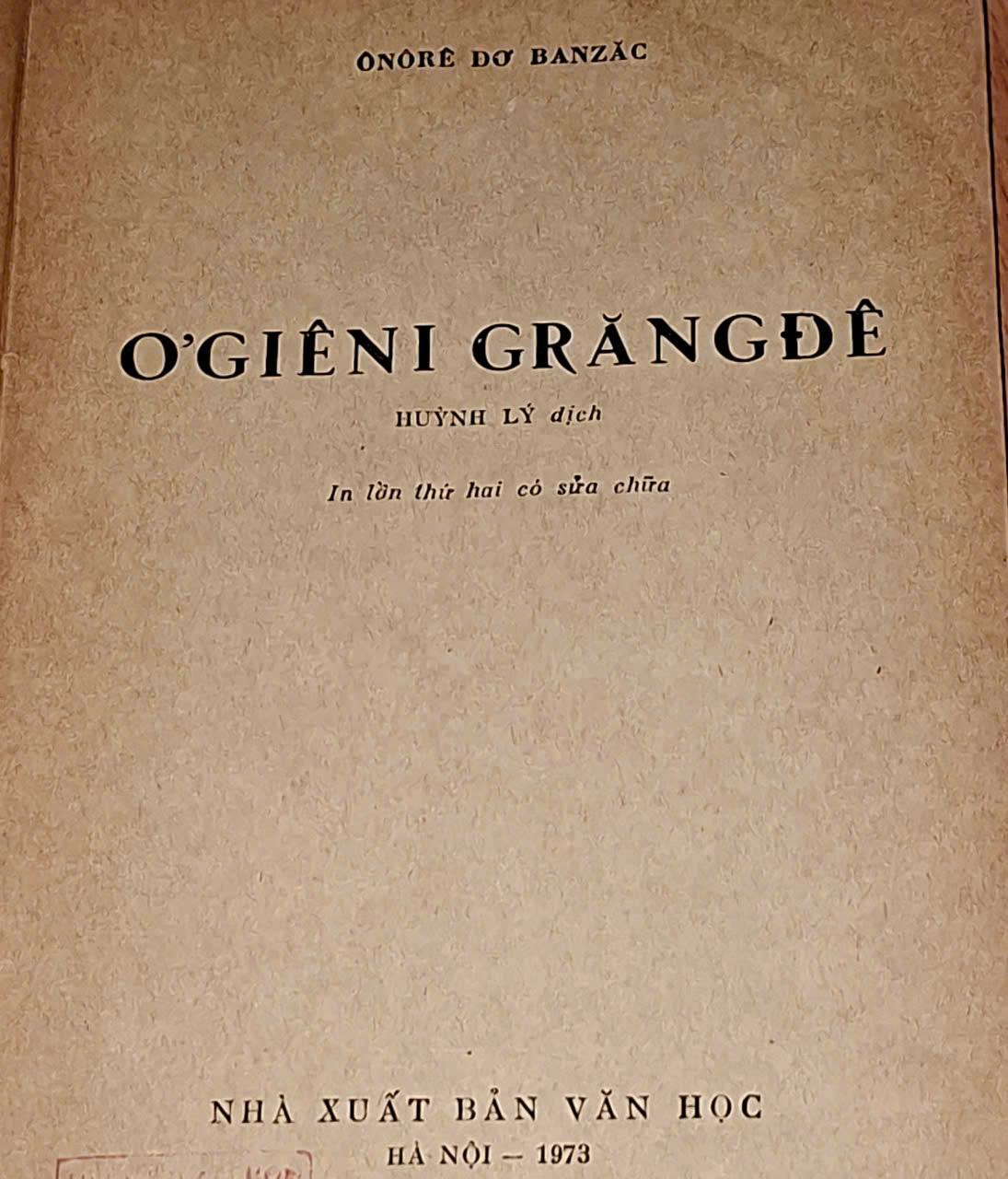 Ơgiêni Grăngđê - H. De Balzac ( Huỳnh Lý dịch ) - NXB VĂN HỌC 1973, 278 trang, khổ 13x19cm