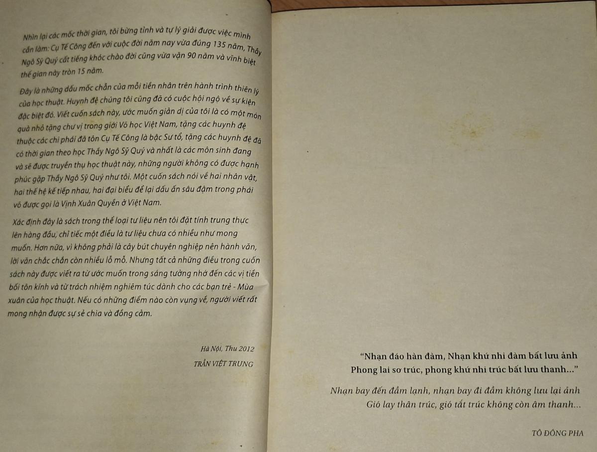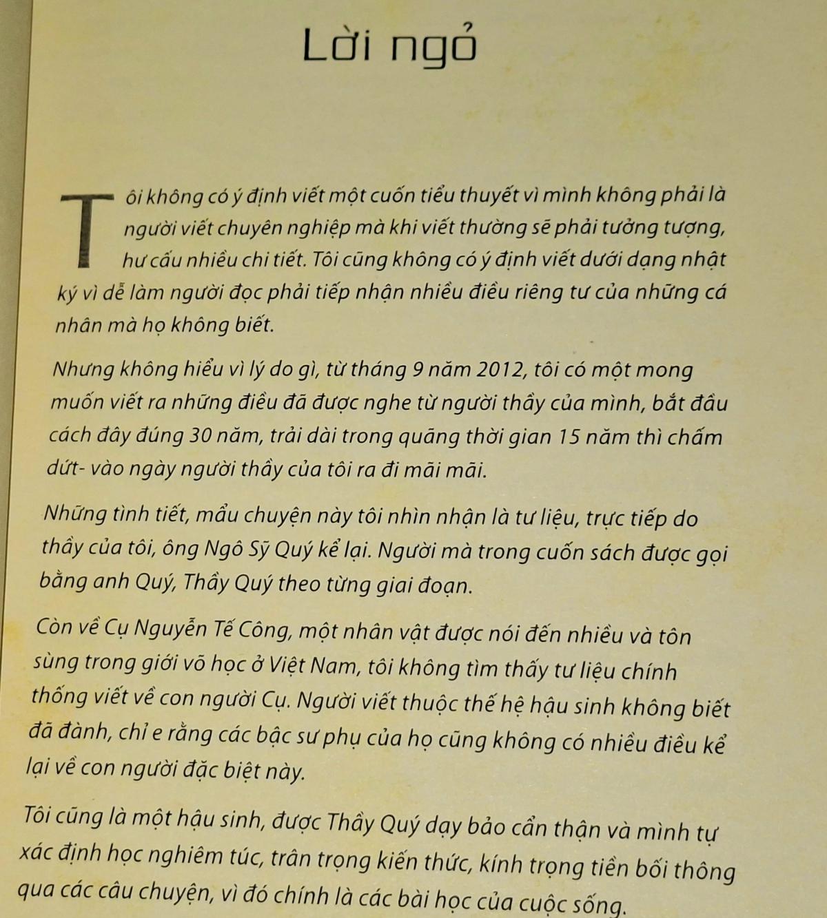 Tác giả cũng là một võ sư, nên cuốn sách có được một bố cục gọn, một tiết tấu độc đáo, cuồn cuộn sự kiện nhưng vẫn sâu hút tình cảm. Là tình người với nhau, tình thầy trò, đạo nghĩa trong đời.