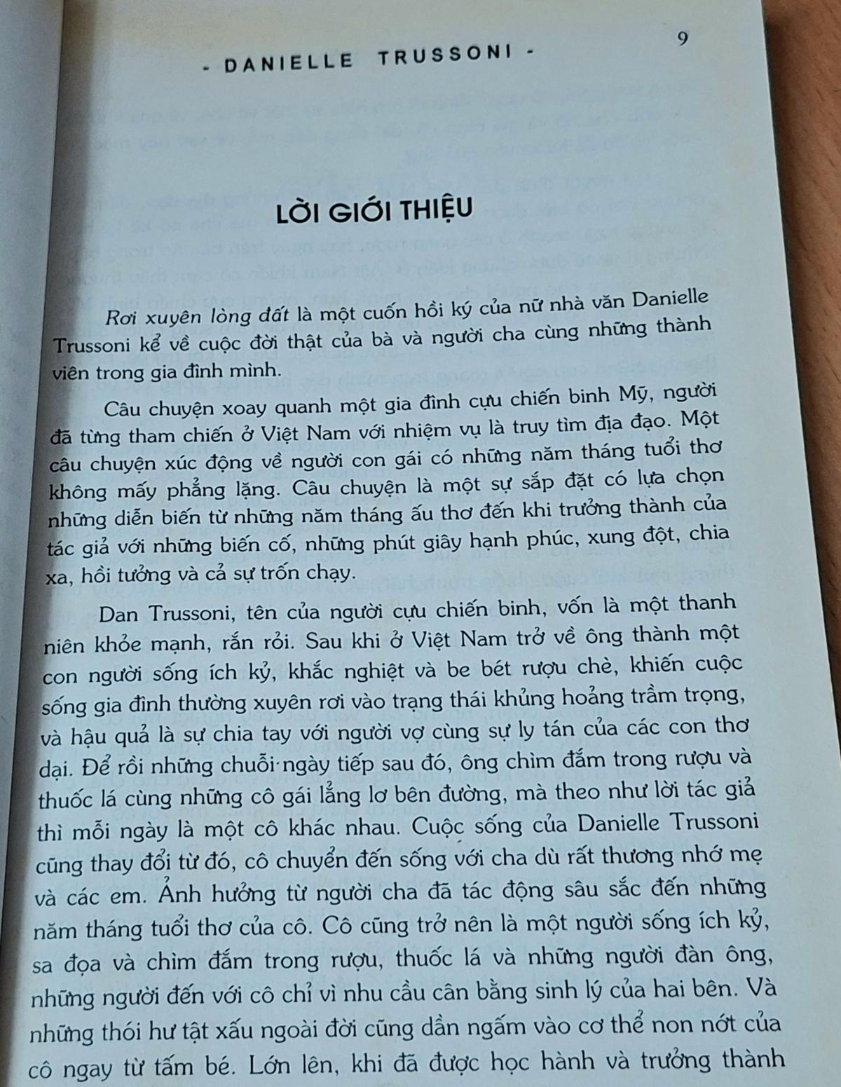 " Rơi xuyên lòng đất "  là một cuốn hổi ký cửa nữ nhà văn Danielle Trussoni kể về cuộc đời thật của bà và người cha cùng những thành viên trong gia đình mình.