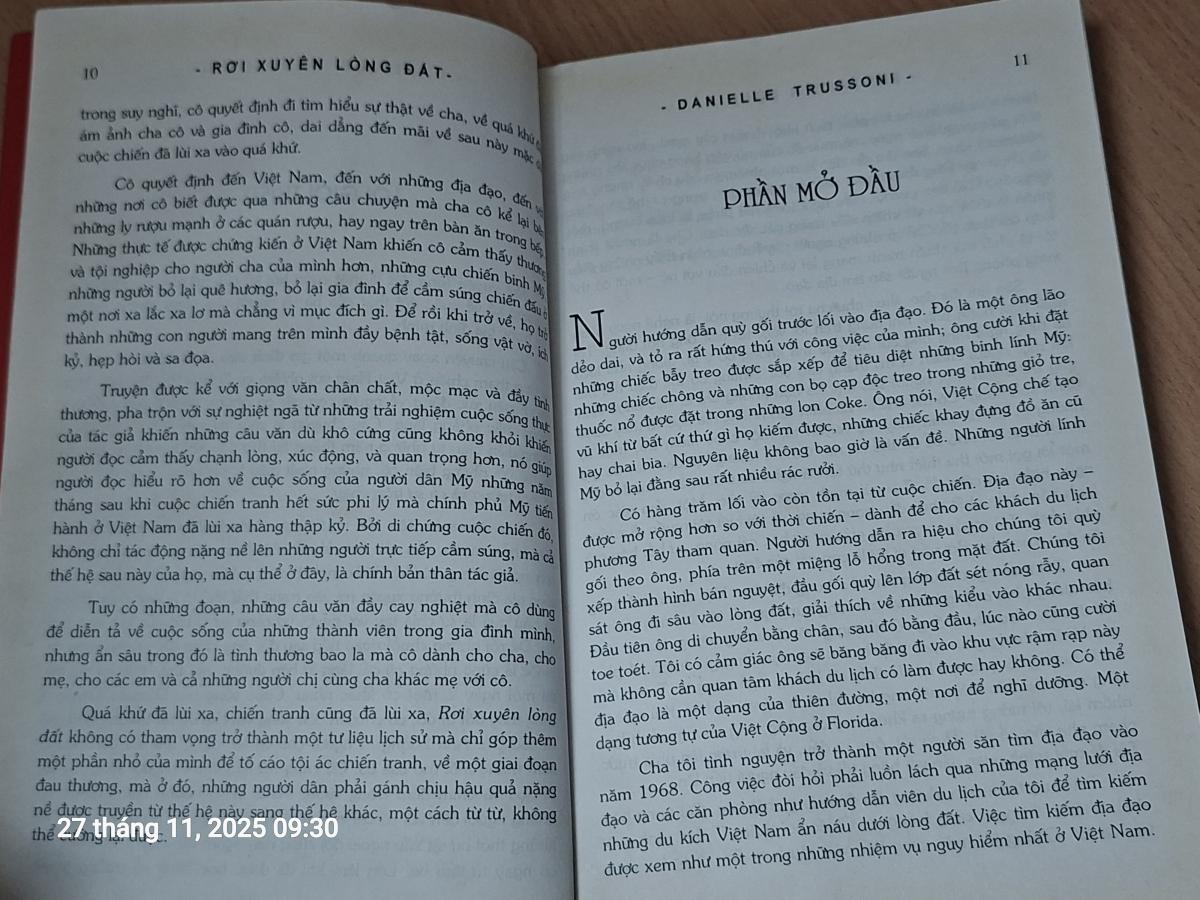 Câu chuyện xoay quanh một gia đình cựu chiến binh Mỹ,  người đà từng tham chiến ở Việt Nam với nhiệm vụ là truy tìm địa đạo. Một câu chuyên xúc động về người con gái có những năm tháng tuổi thơ không mấy phẳng lặng. Câu chuyện là một sự sắp đặt có lựa chọn những diễn biến  từ những năm tháng ấu thơ đến khi trưởng thành của tác giả với những biến cố, những phút giây hạnh phúc, xung đột, chia xa, hồi tưởng và cả sự trốn chạy.
