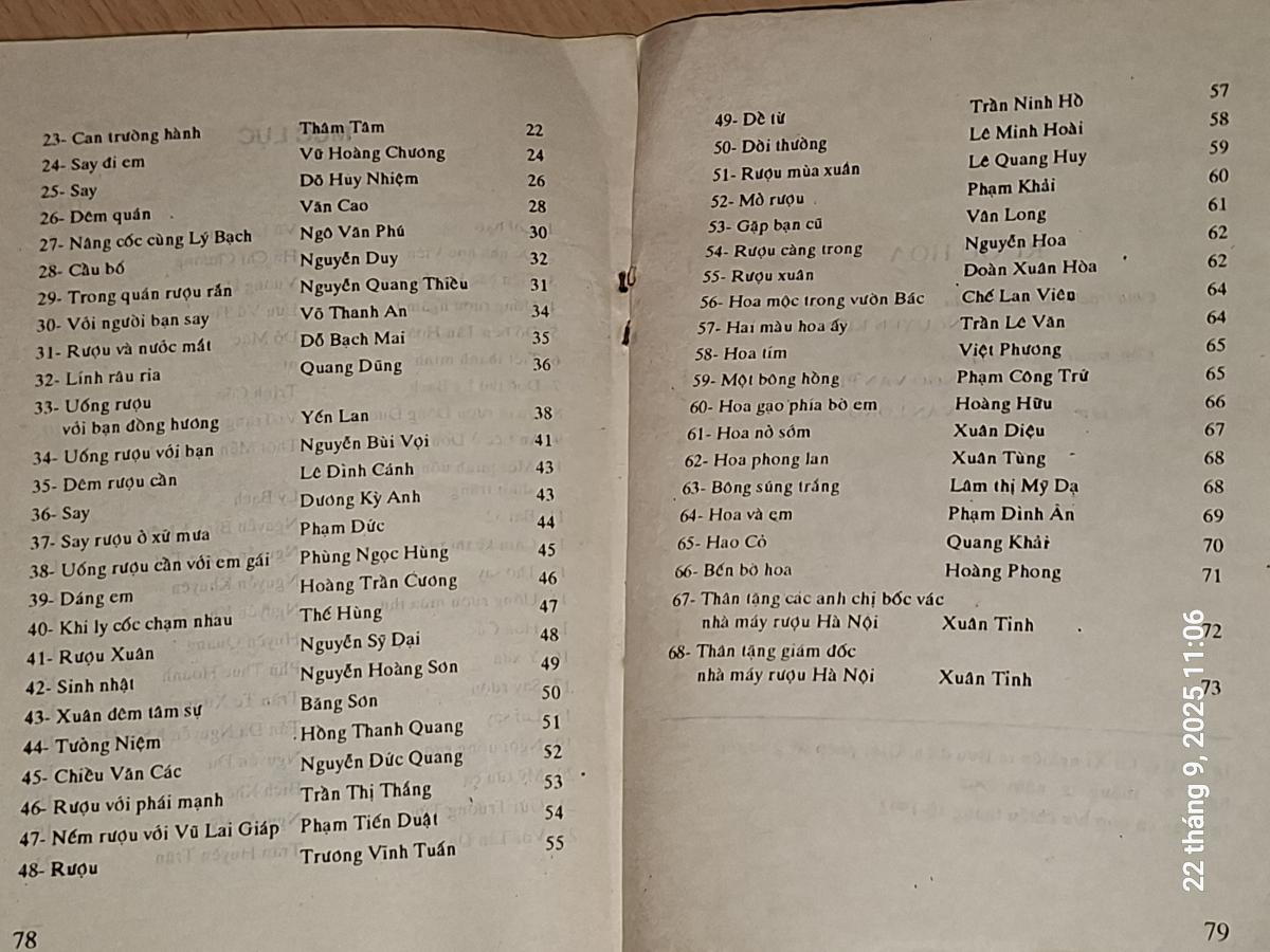 Rượu Hoa - NHIỀU TÁC GIẢ - NXB HỘI NHÀ VĂN 1992, 80 trang, khổ 13x19cm .